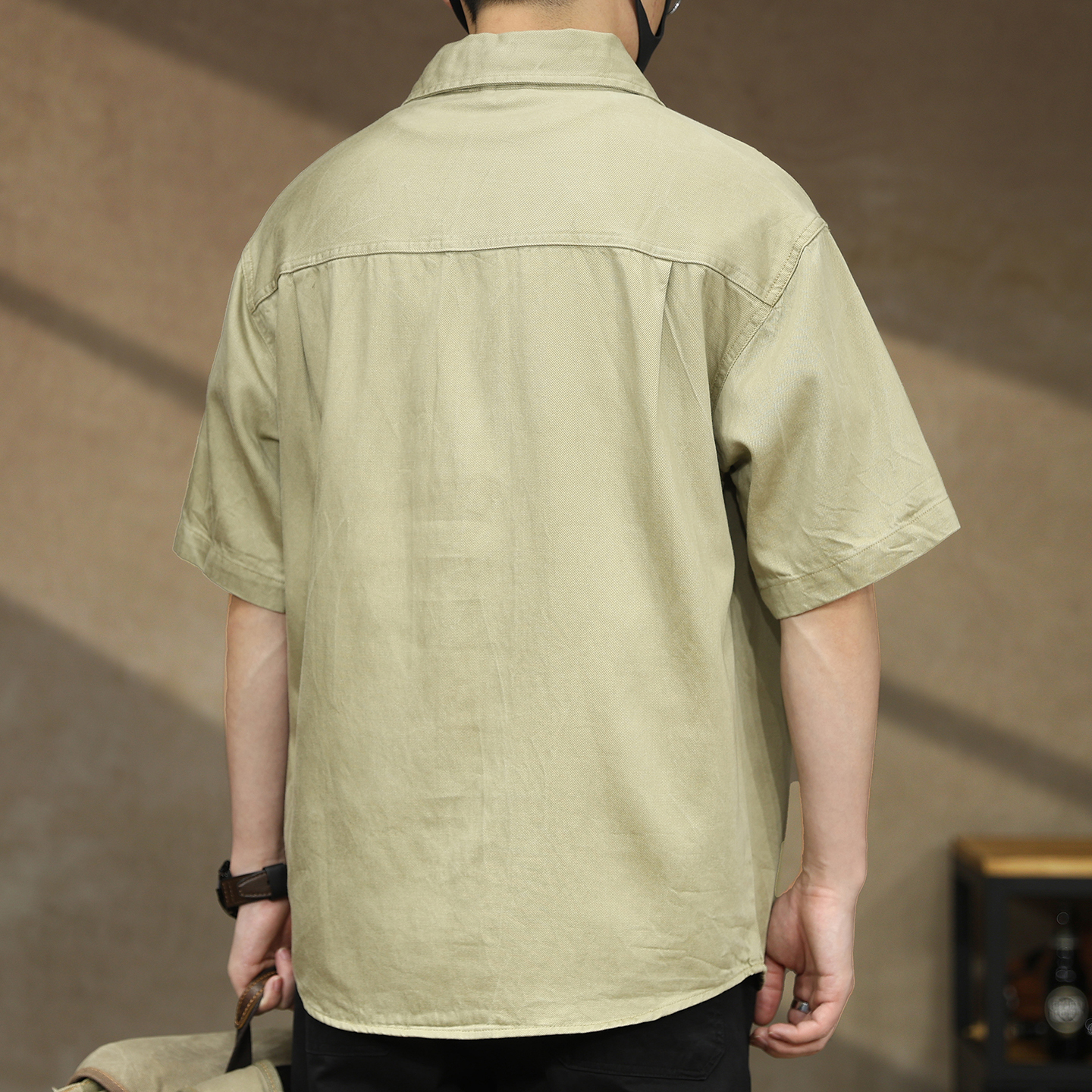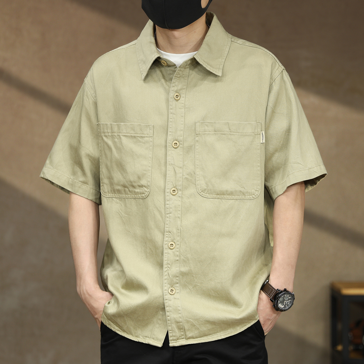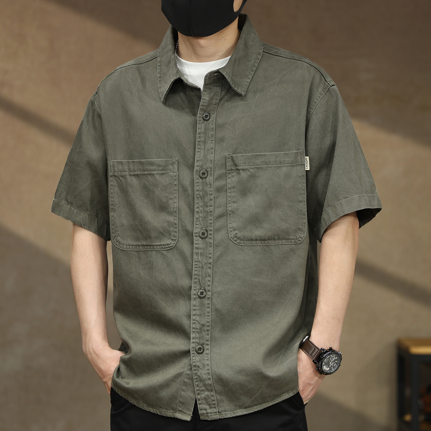 夏季高级感莱赛尔天丝牛仔短袖衬衫男士2025新款美式水洗工装衬衣