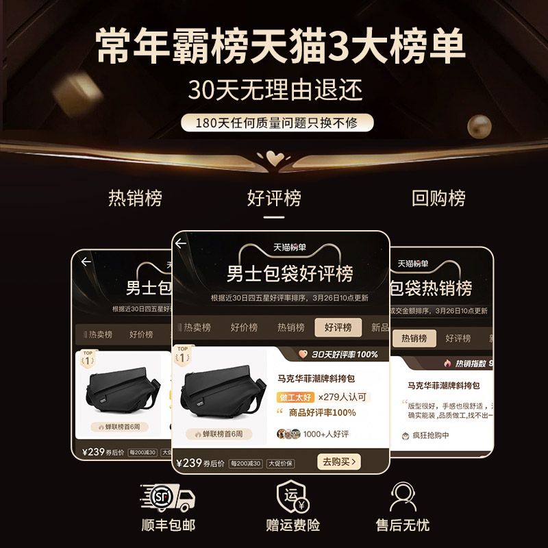 马克华菲潮牌单肩包邮差包机能男士斜挎包高级感运动骑行胸包男生