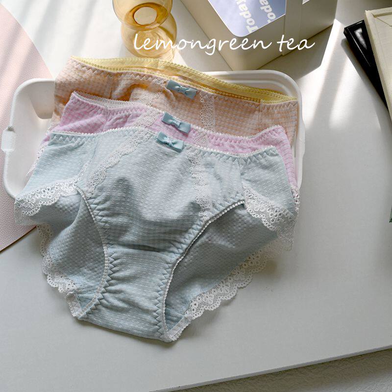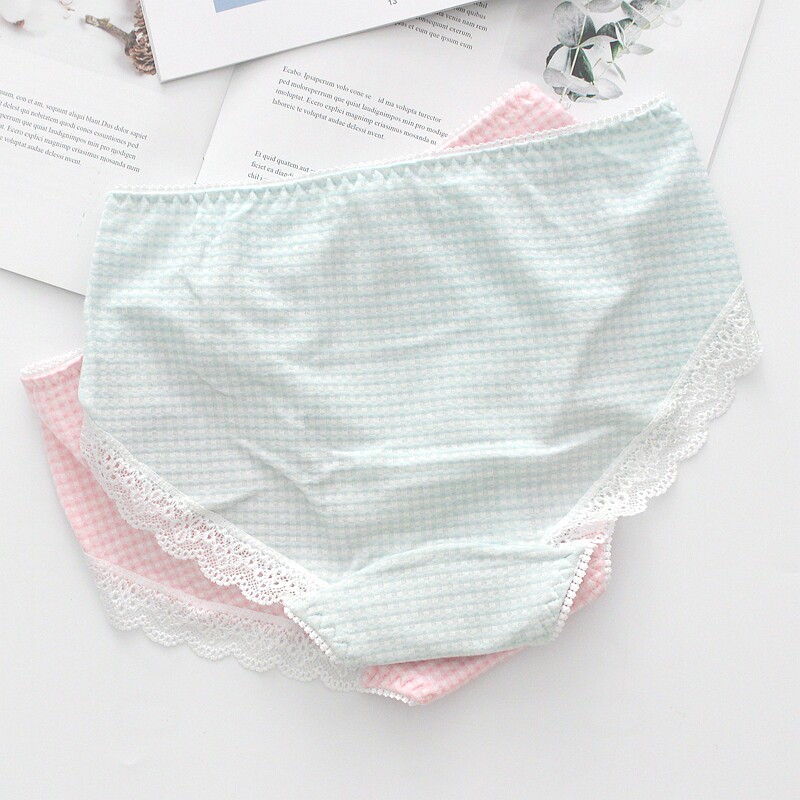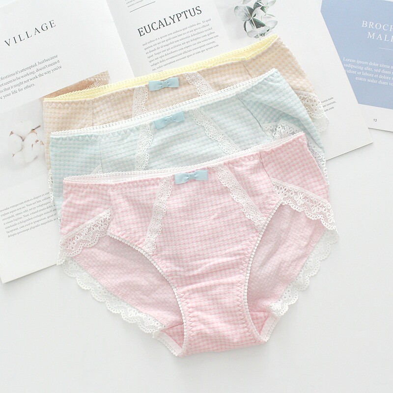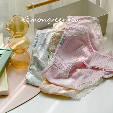 日单泡泡棉蕾丝学生纯棉包臀中低腰三角女内裤格子少女短裤有加大