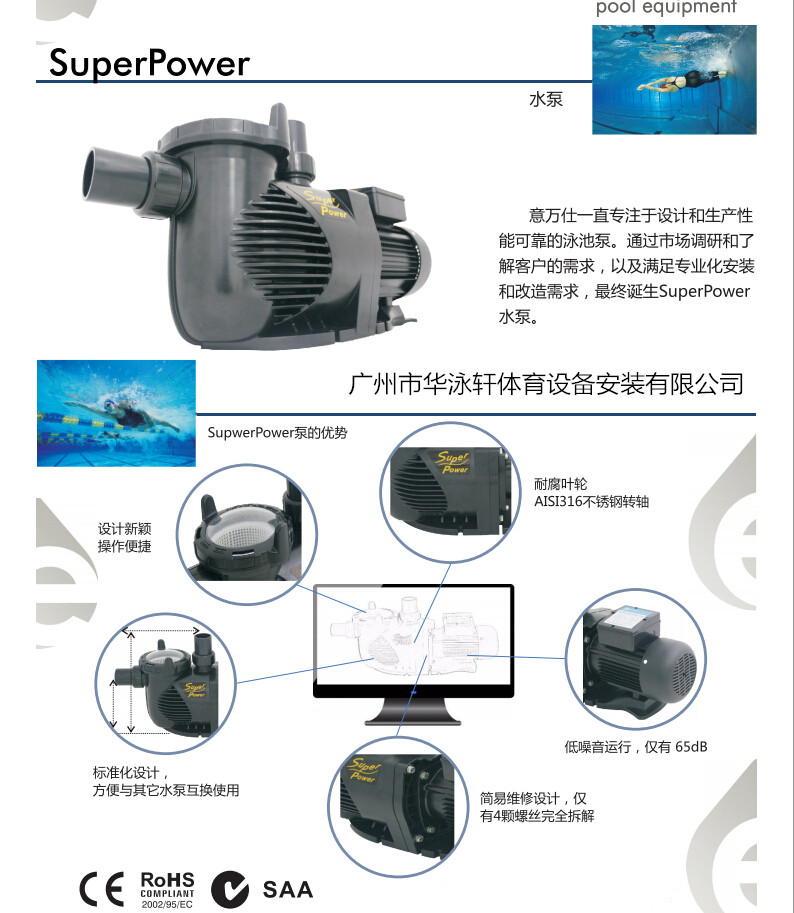 EMAUX意万仕SUPERPOWER系列低噪音泳池浴池温泉过滤循环水泵1-3HP