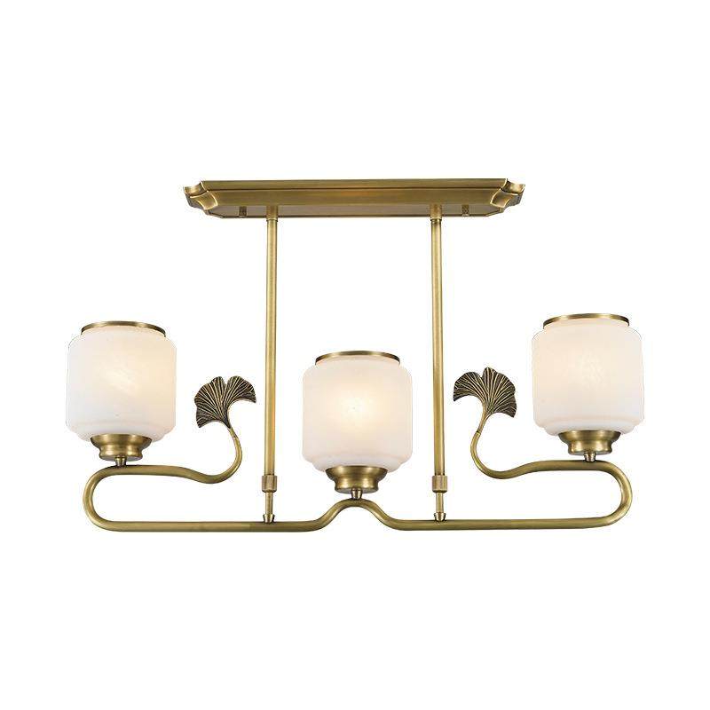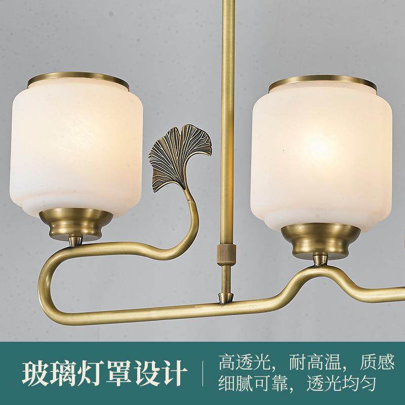 新中式全铜玻璃三头吊灯轻奢大气客厅餐厅灯别墅大厅玻璃灯具