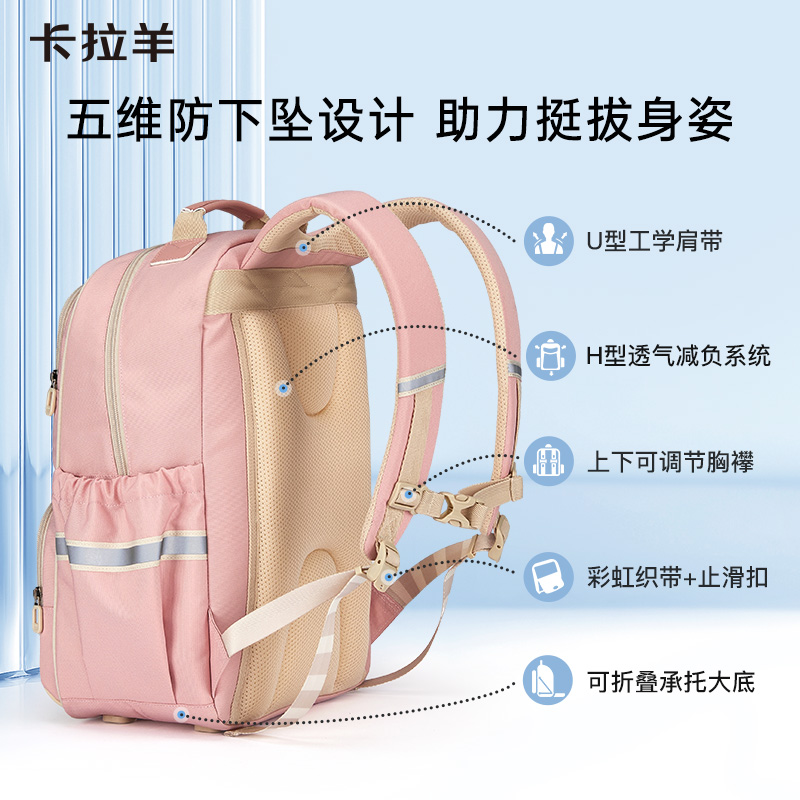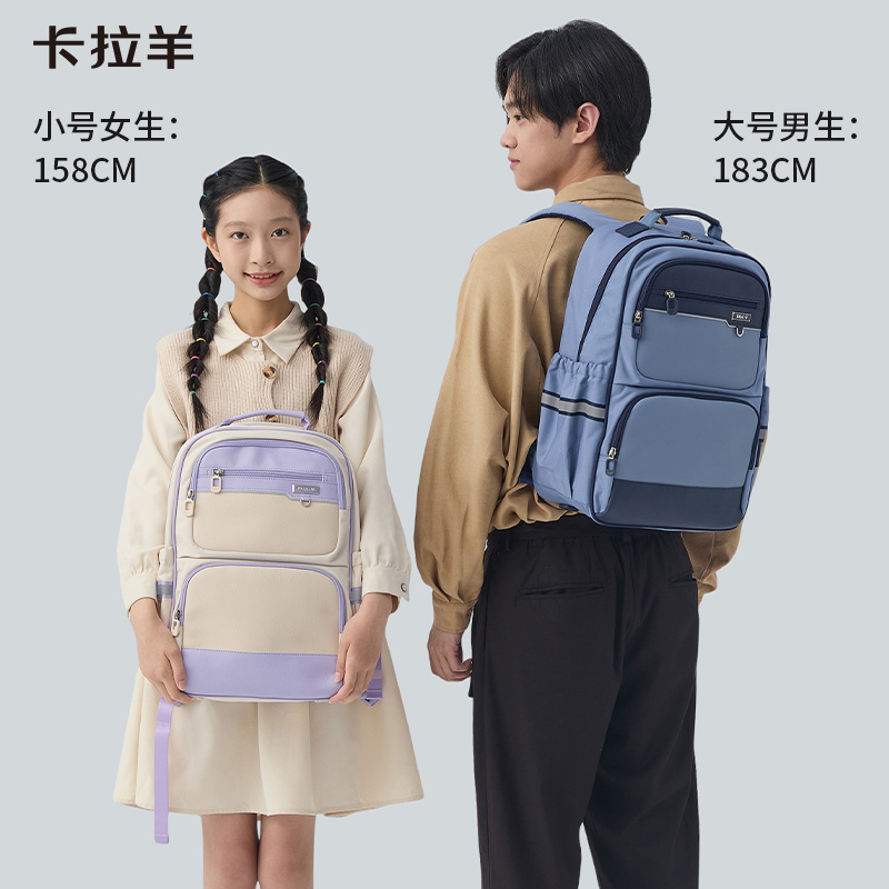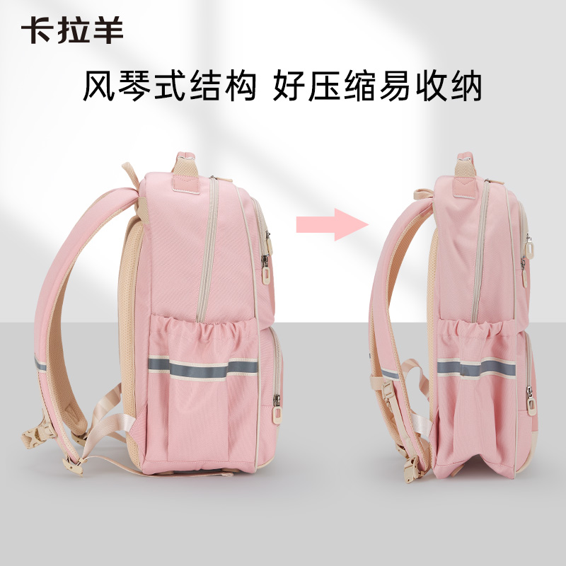 【2025新款】卡拉羊初高中学生风琴书包减负护脊大容量背包男女生高颜值简约双肩包精灵系列