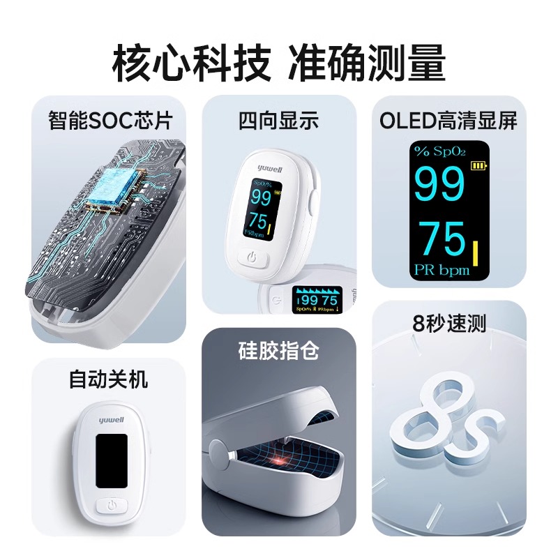 鱼跃血氧仪指夹式医用血氧饱和度检测家用手指测量脉搏检测