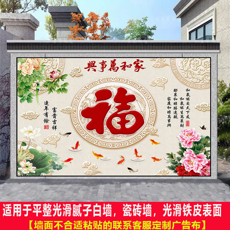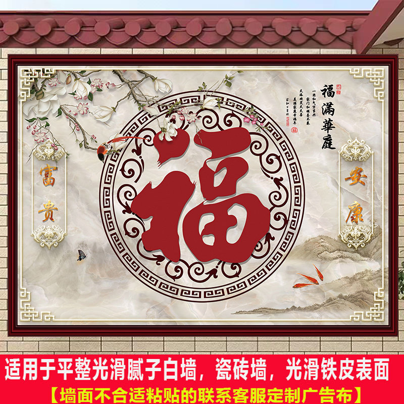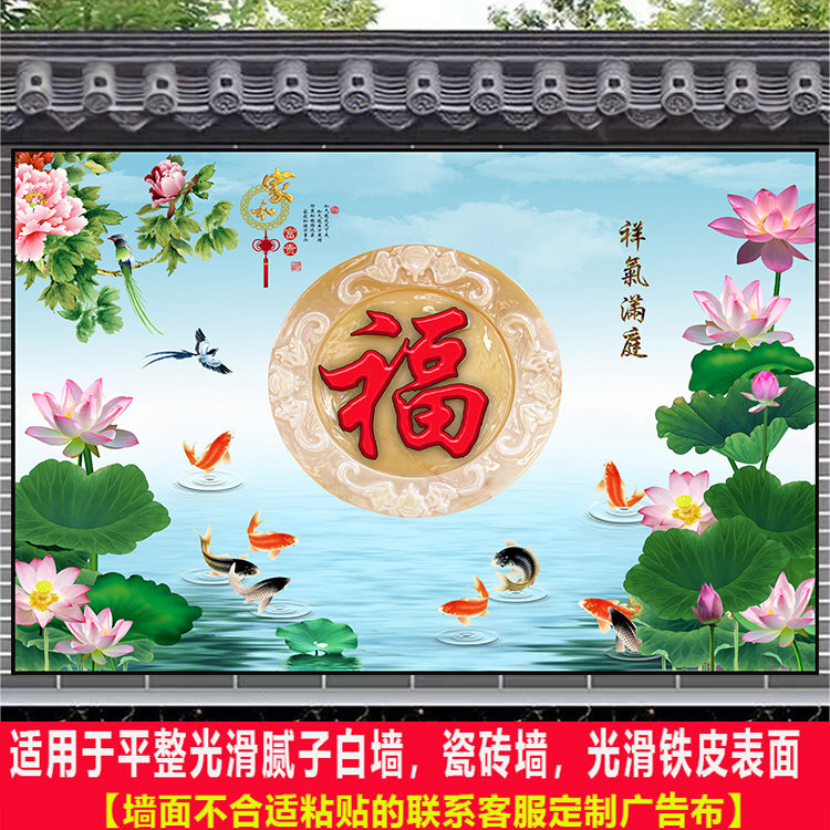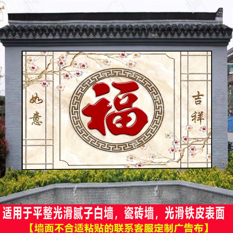 防雨防晒农村室外迎门墙壁画庭院影壁墙贴画照壁自粘户外防水贴纸