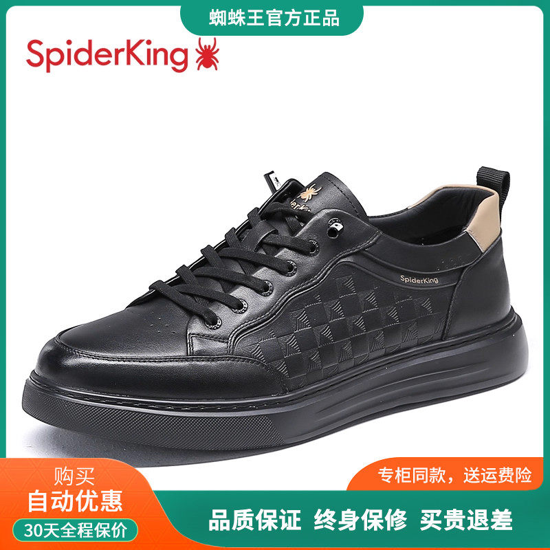 蜘蛛王小码36 37男鞋秋款真皮一脚蹬小黑鞋潮流大码45 46休闲板鞋