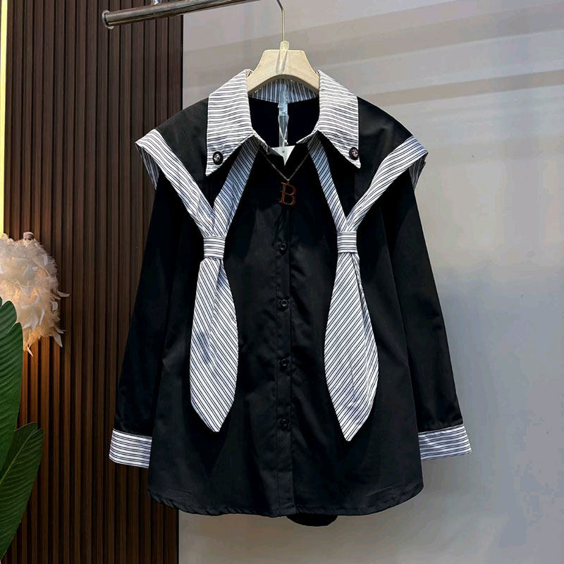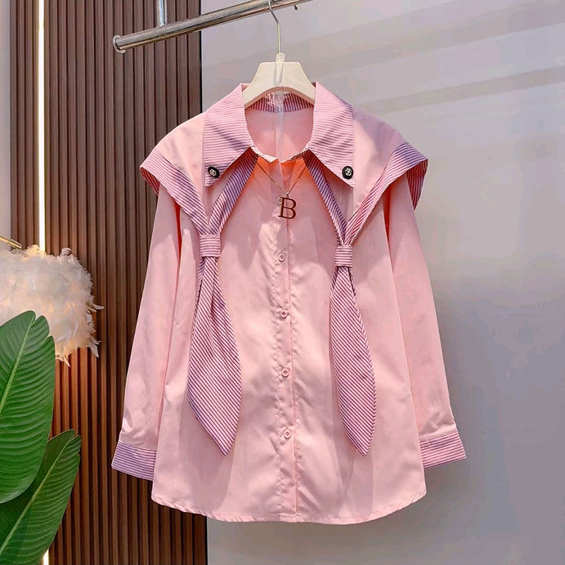 新款欧洲站减龄糖果色披肩领衬衫