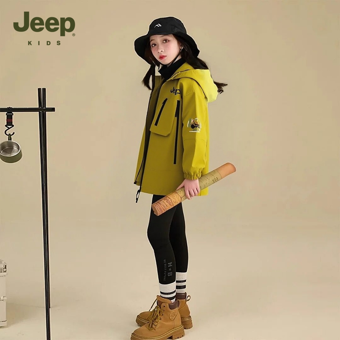 Jeep吉普童装女童冲锋衣2025秋冬新款儿童外套中大童休闲百搭上衣