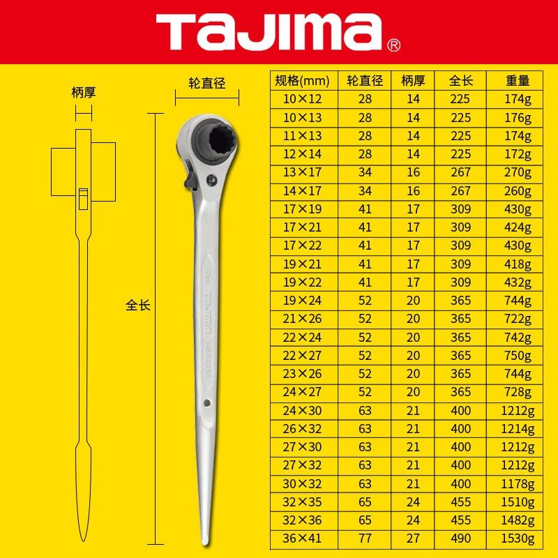 tajima田岛尖尾棘轮扳手多功能快速双向梅花套筒荆轮工具省力扳子