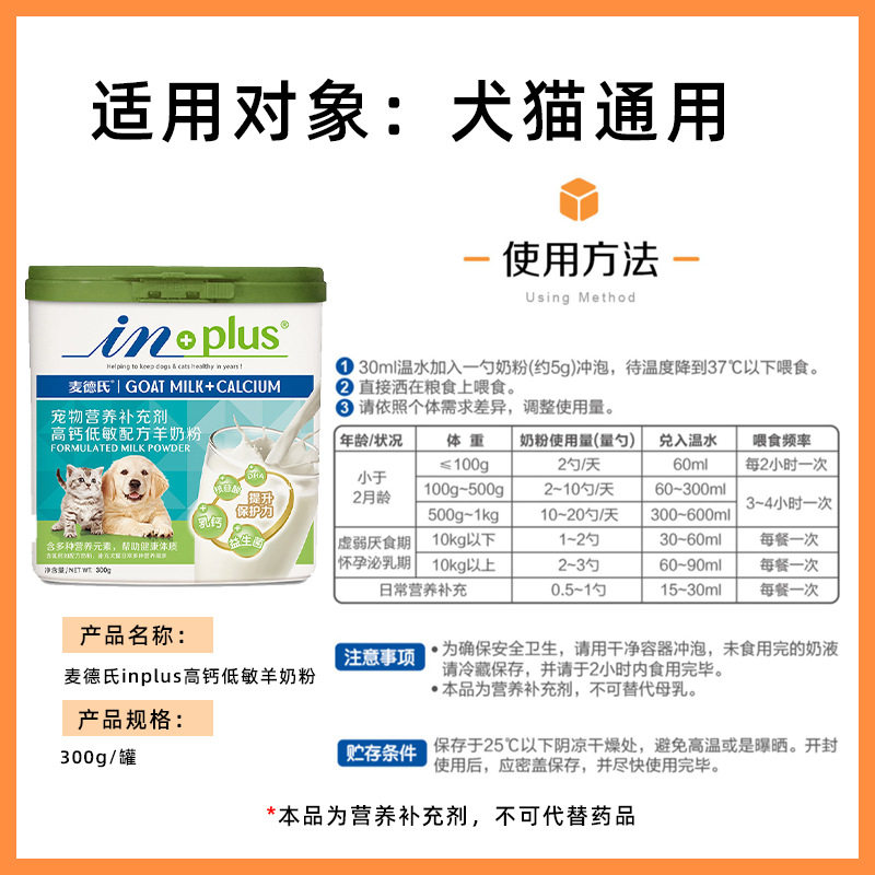 麦德氏羊奶粉300g狗狗猫咪高钙低敏羊奶粉幼犬幼猫奶粉宠物补钙