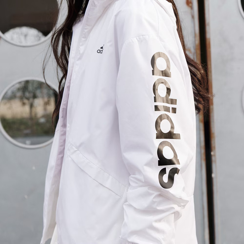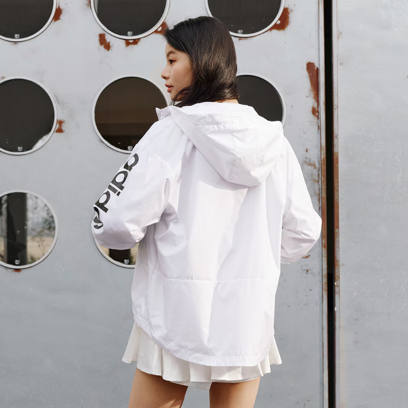 阿迪达斯防风衣女秋季新款连帽梭织透气白色运动服宽松棒球服外套