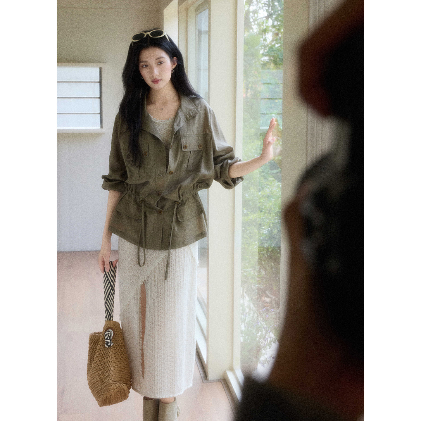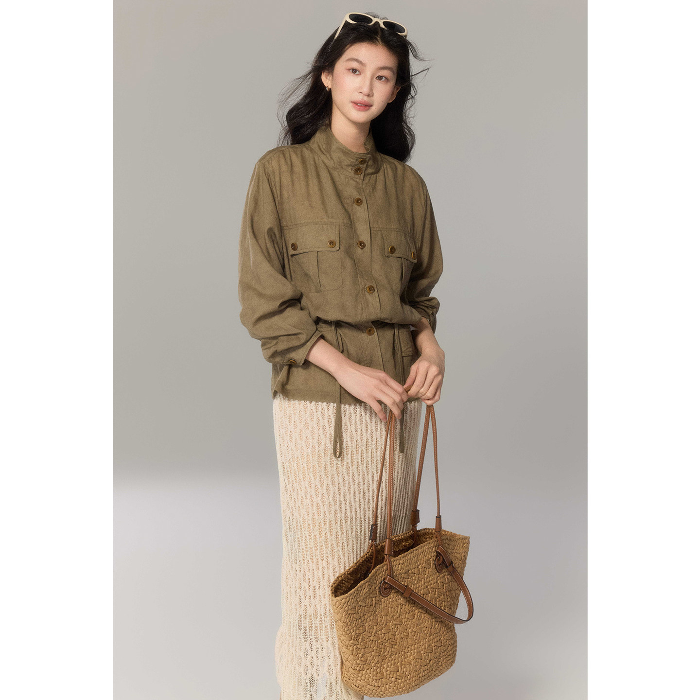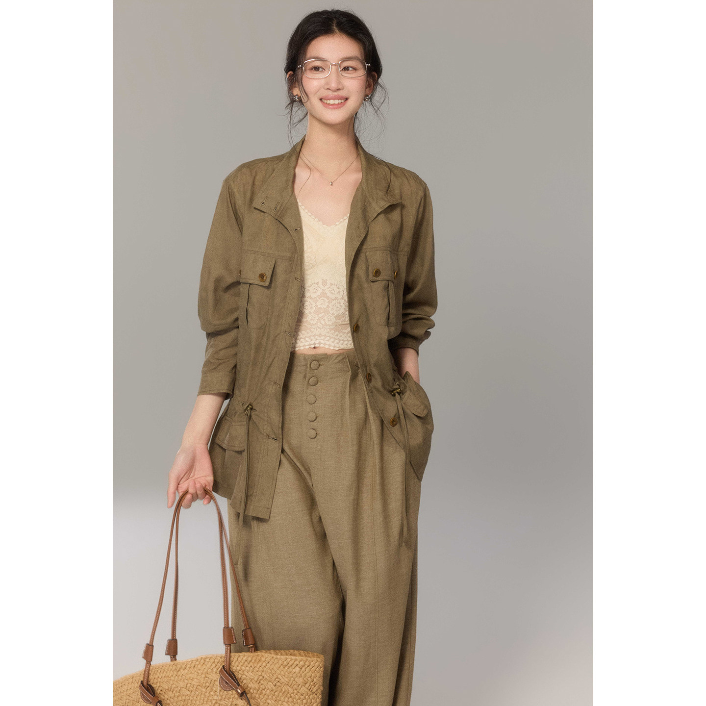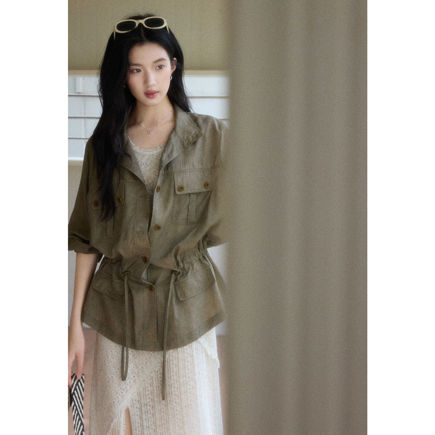 贰羊设计【野径】复古工装风廓形天丝棉宽松衬衫女春季新款短外套