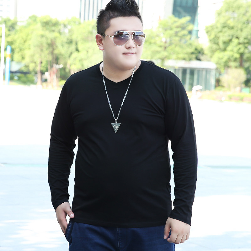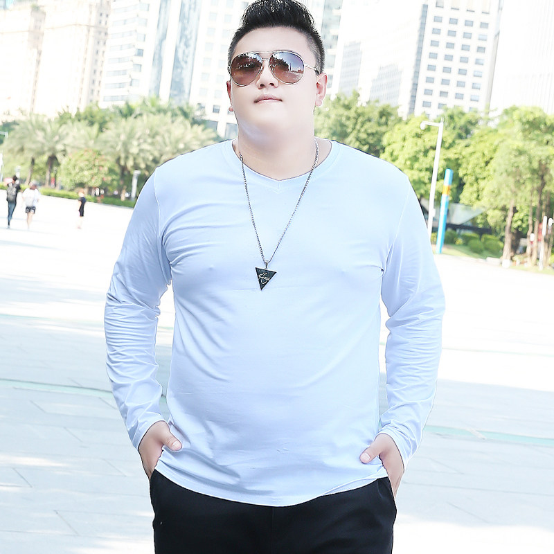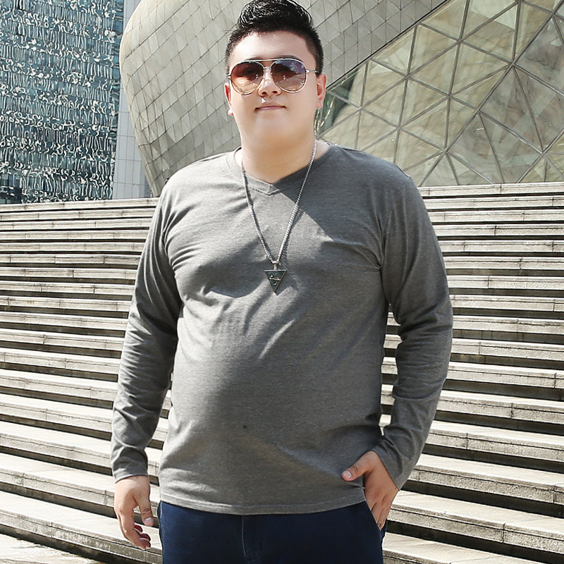 加肥加大长袖T恤男士宽松休闲大码潮牌肥佬V领纯棉大号体恤打底衫