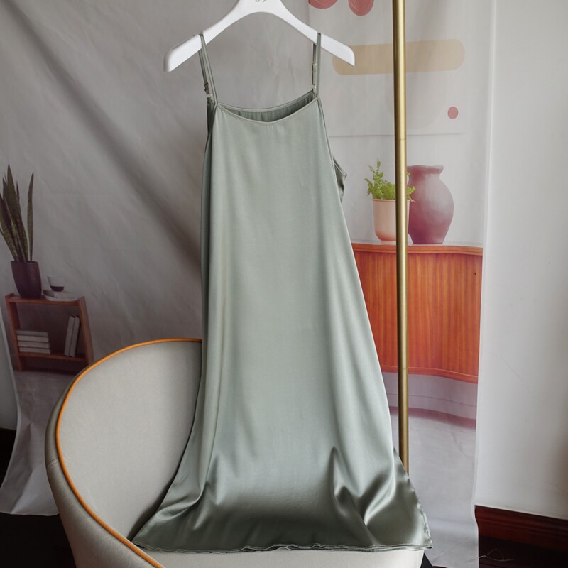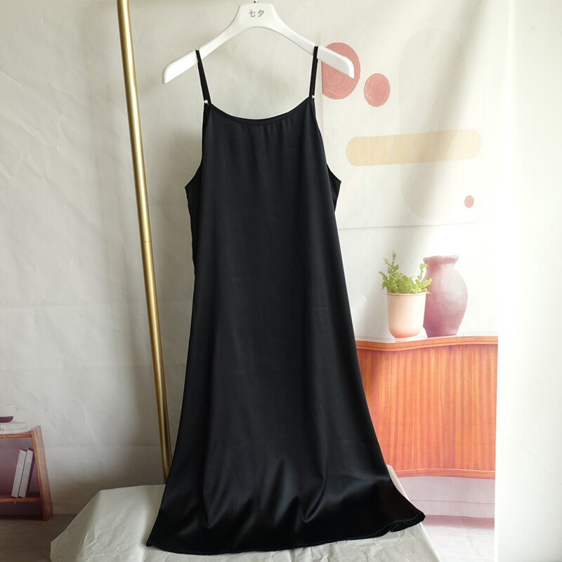 桑蚕真丝吊带连衣裙女可调节肩带睡裙内搭打底外穿简约百搭大码新
