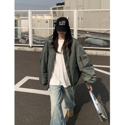 SIXI四喜家 美式vibe/重工廓形飞行员夹克女秋冬棉服棒球服外套