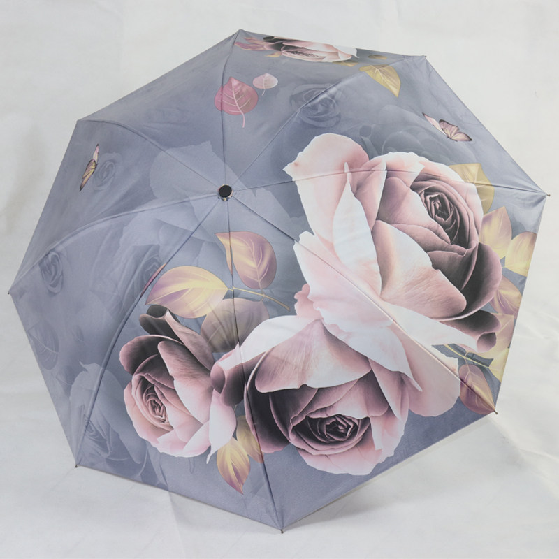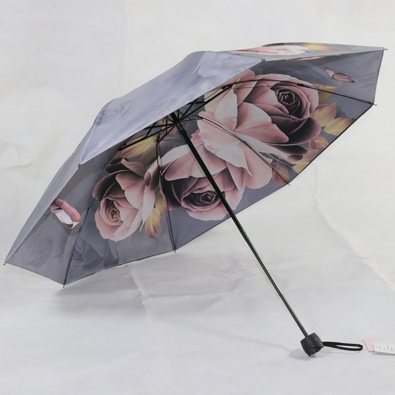 双层复古黑胶伞超强防晒防雨晴雨伞三折叠遮阳伞太阳伞女双面印花