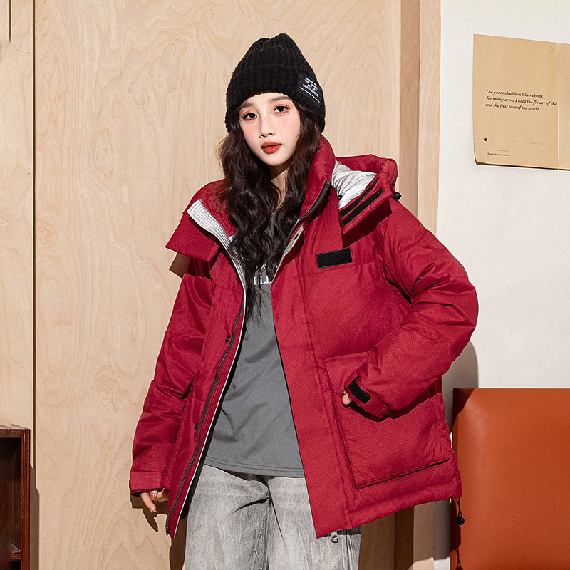 【90鸭绒】冬季男女同款户外运动大口袋保暖连帽中长款羽绒外套
