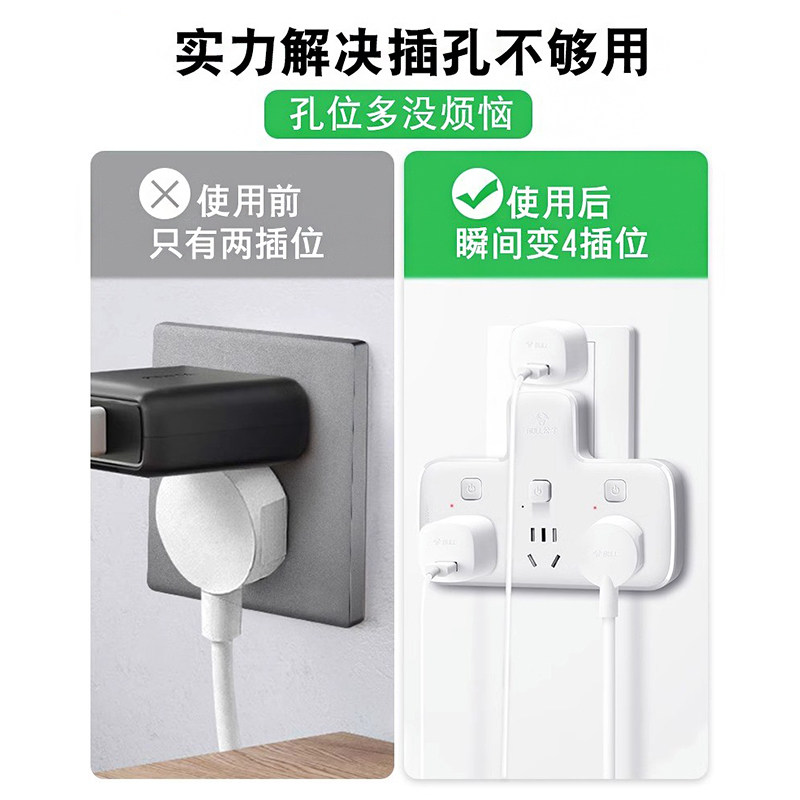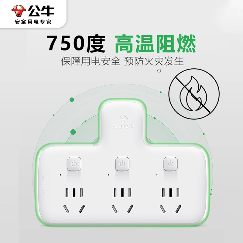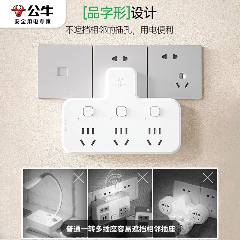 公牛插座转换器插头一转二三多孔功能面板无线插板不带线插排家用