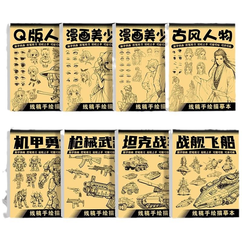 坦克机甲战舰器械线稿练习本漫画古风Q版人物儿童绘画控笔可描涂
