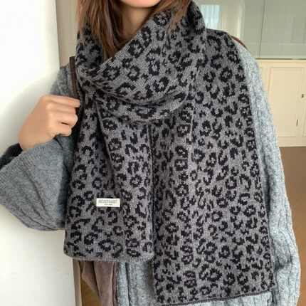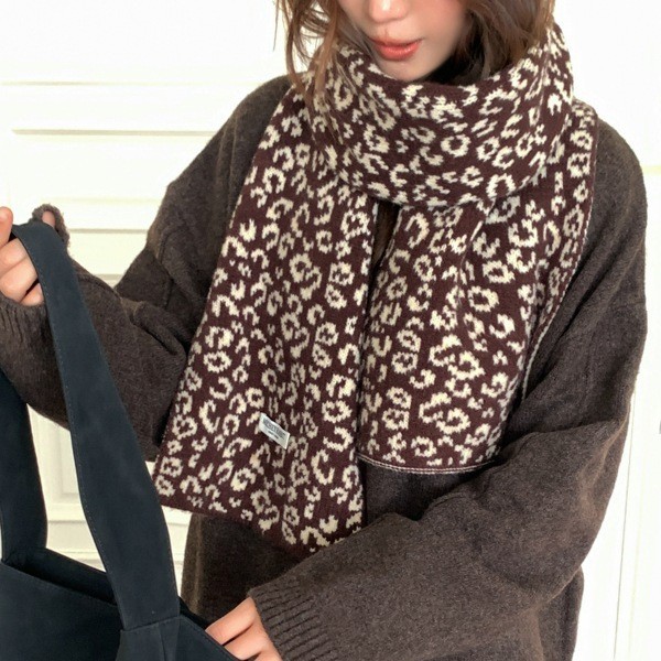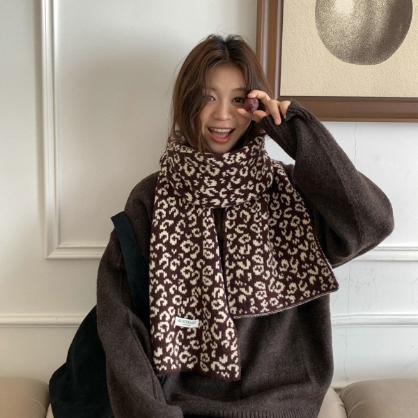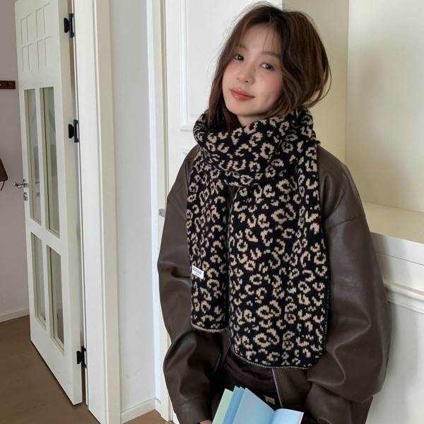 复古豹纹围巾女冬季2025新款高级感百搭针织秋冬保暖围脖披肩两用