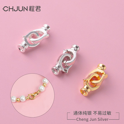 S925纯银珍珠项链扣头搭扣接头diy手工手链连接双环8字尾扣子配件
