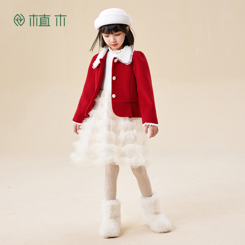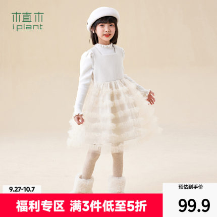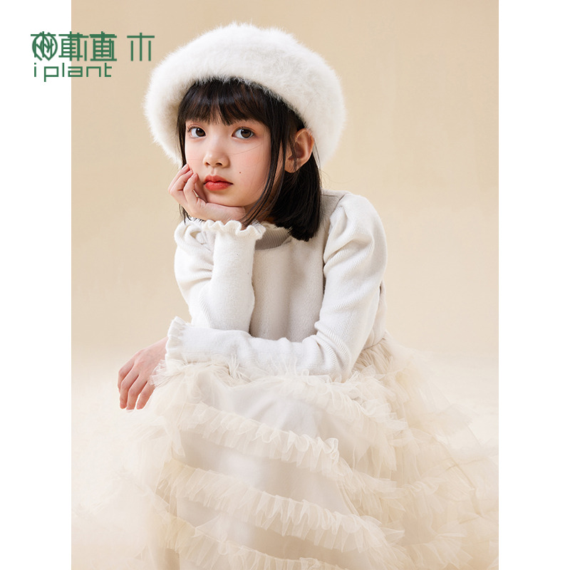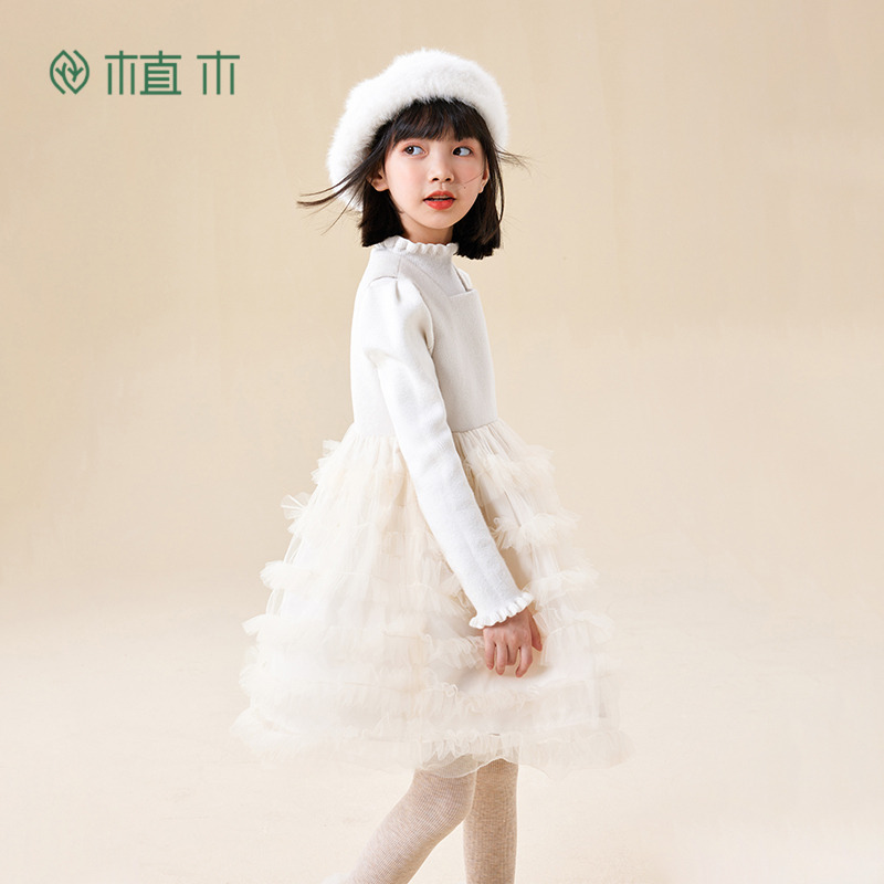 【秀场同款】植木童装拼接网纱毛呢女童连衣裙2025冬装儿童背心裙