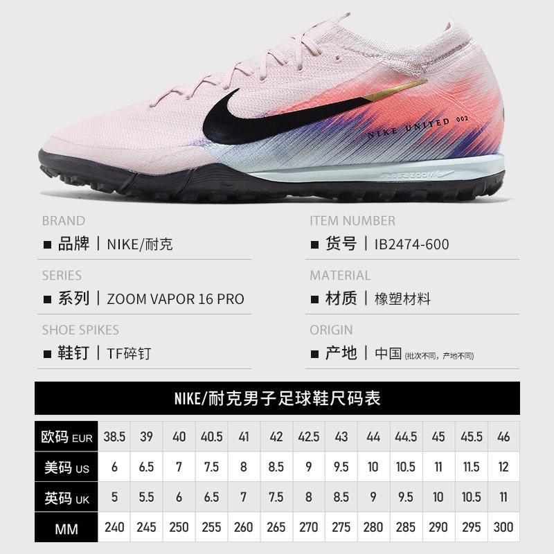 NIKE耐克刺客16次高端新款VAPOR低帮TF碎钉足球鞋男子IB2474-600