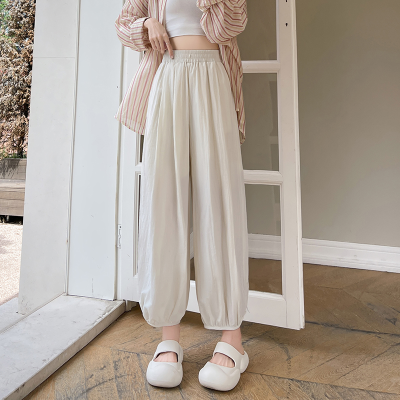八分冰丝灯笼裤女夏薄款高腰小个子九分奶奶裤宽松遮胯显瘦萝卜裤