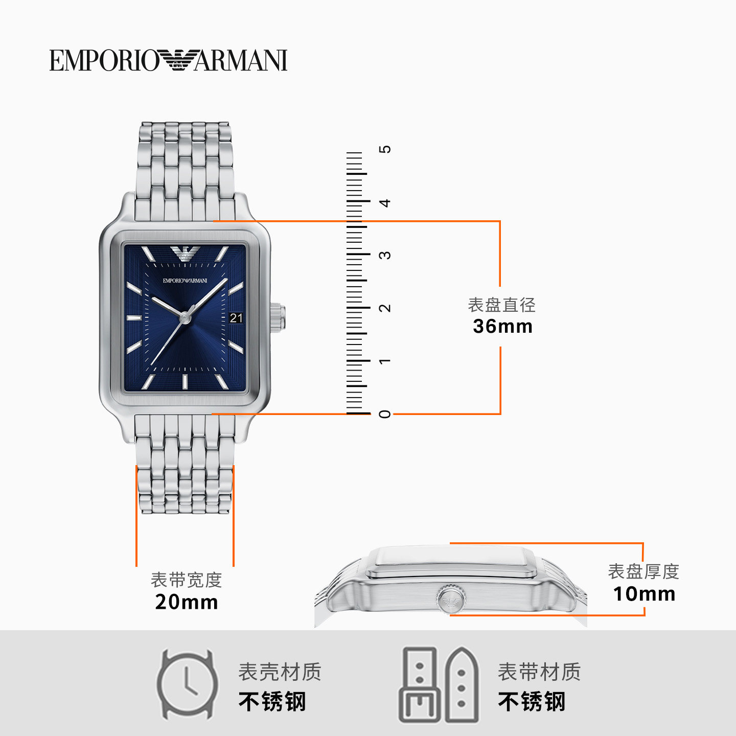 EMPORIO ARMANI/阿玛尼26年春夏新款男士方形钢带优雅石英腕表
