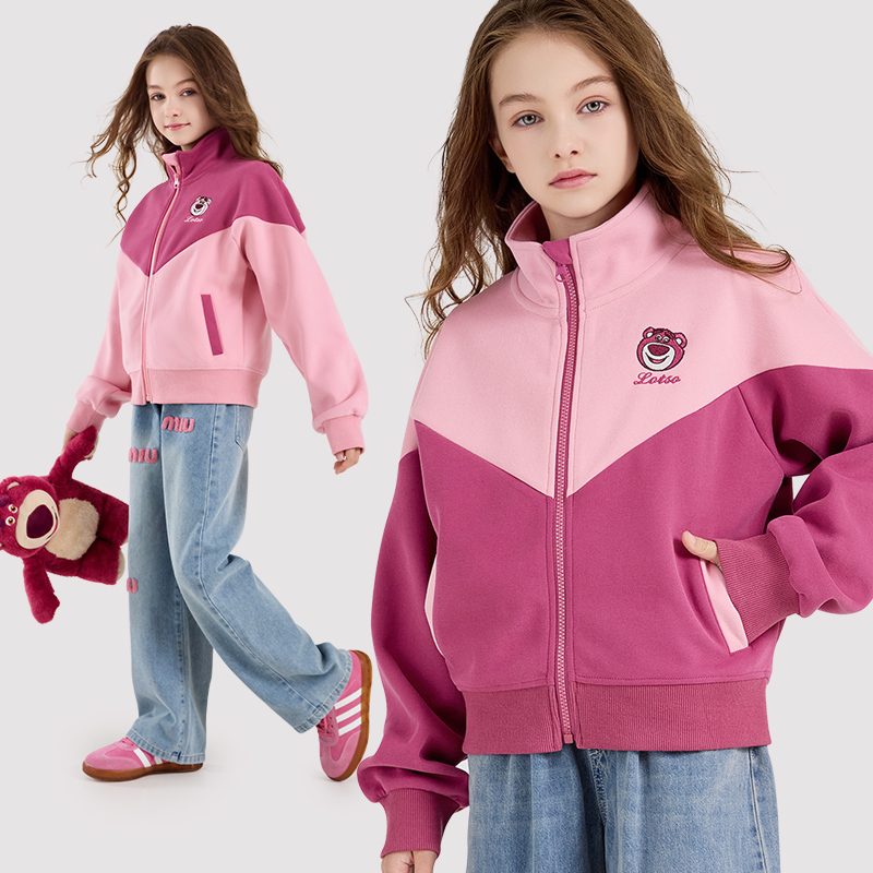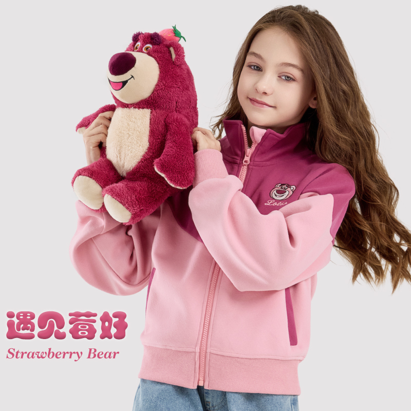 迪士尼女童外套春秋草莓熊童装儿童棒球服中大童开衫女孩洋气上衣