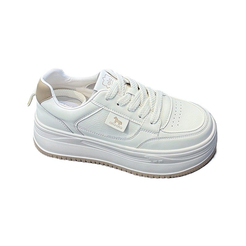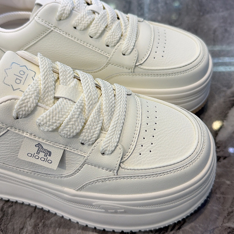 超轻厚底~小个子6cm韩版休闲鞋女2026春新款真皮系带圆头松糕板鞋