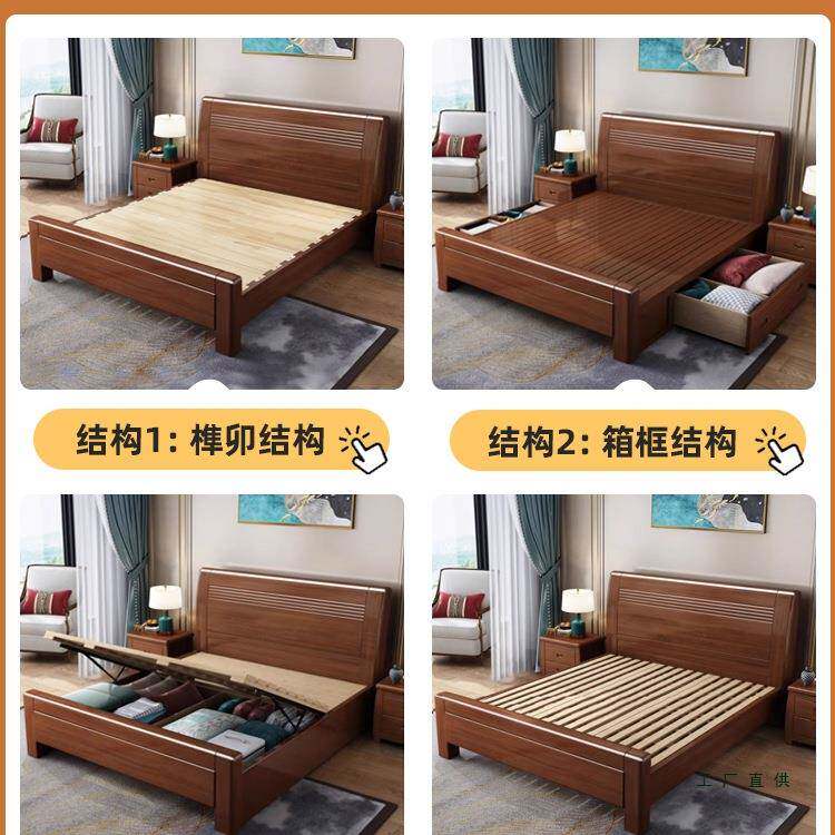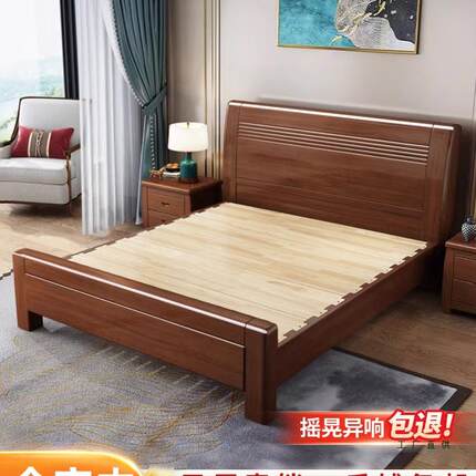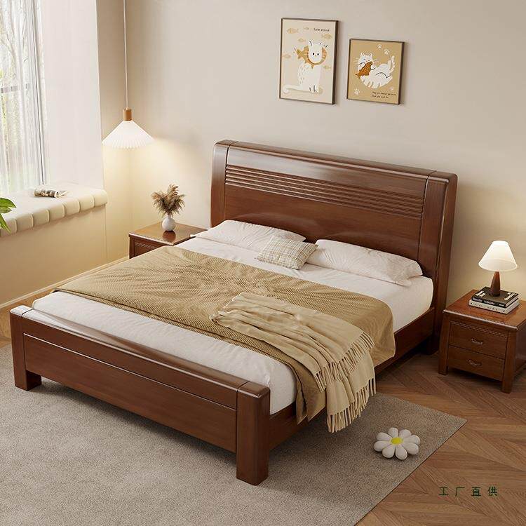 实木床现代简约胡桃木主卧1.5米双人床1.8米主卧轻奢婚房双人床
