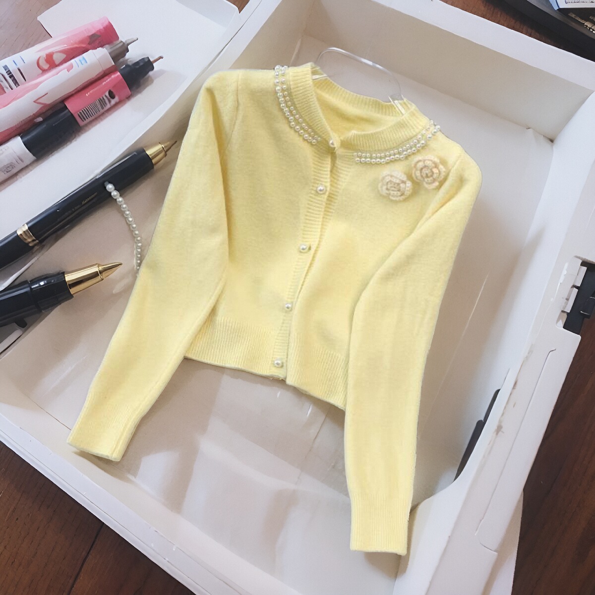 法式小个子短款毛衣秋冬季新款温柔甜美粉色打底上衣针织开衫女士