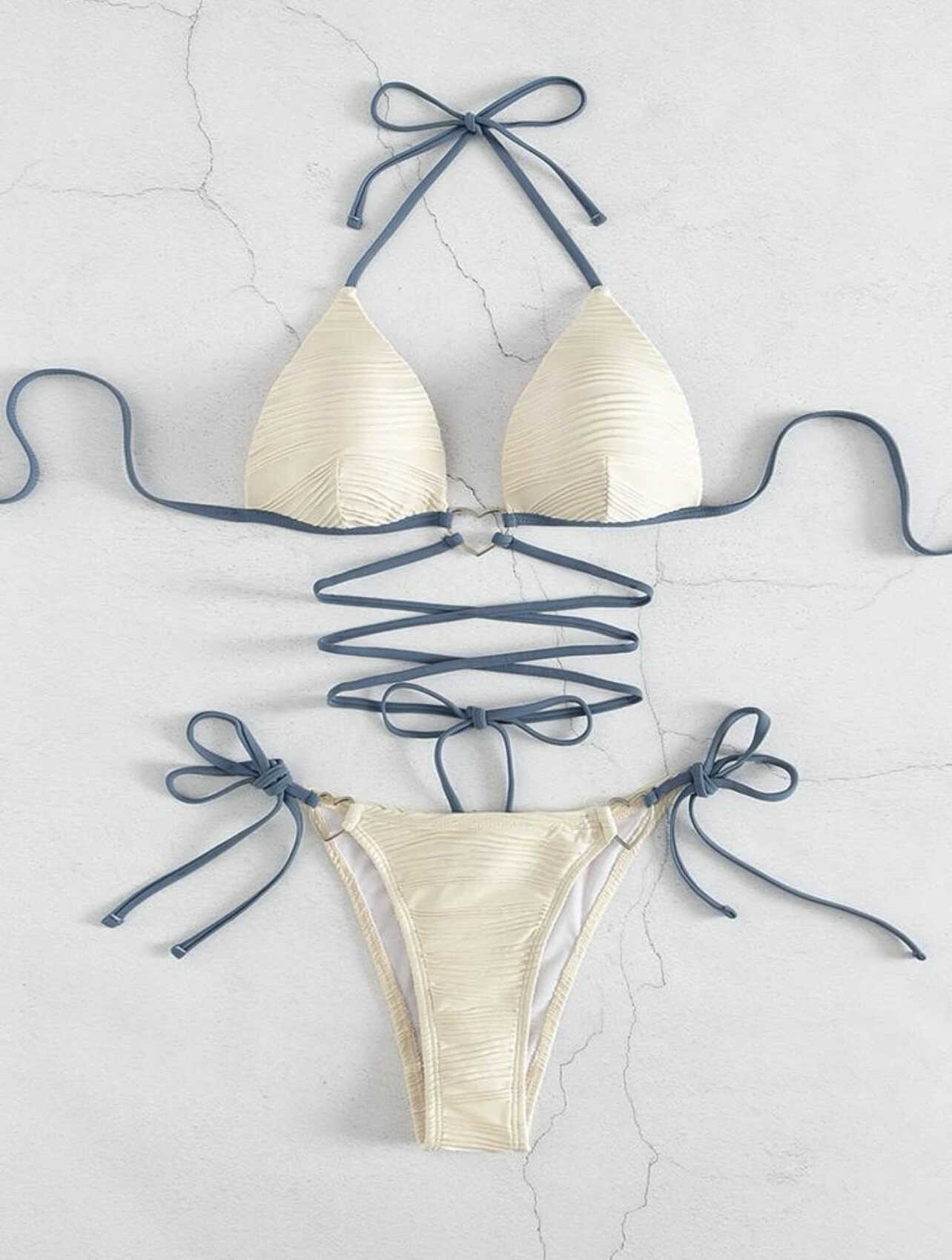 泳衣女爱心绑带比基尼硬杯聚拢三点式显瘦三角ins度假温泉游泳装