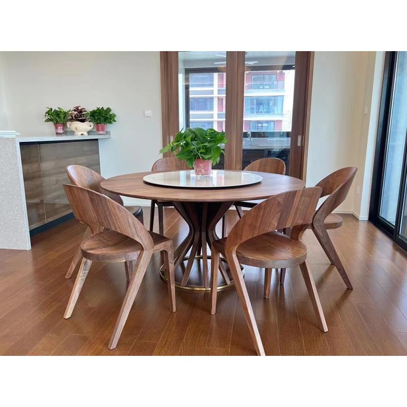 北美黑胡桃百强家具实木圆形餐桌纯实木现代家用别墅大圆餐桌转盘