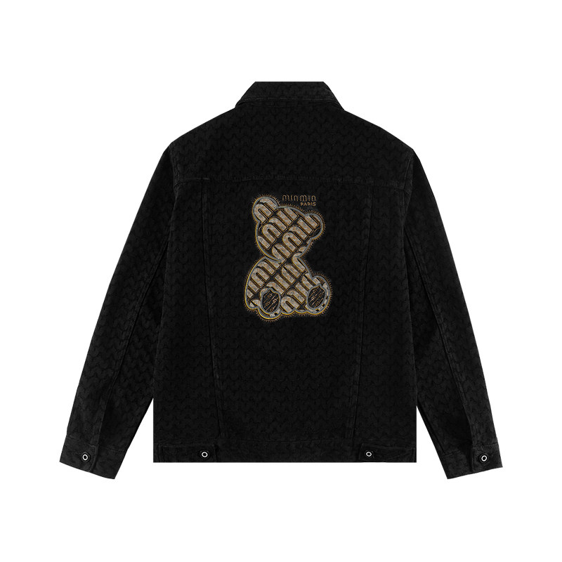 BAIRBAOLIY创意小熊烫钻提花翻领修身型夹克春季经典休闲潮流外套