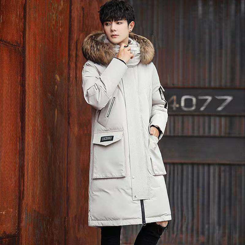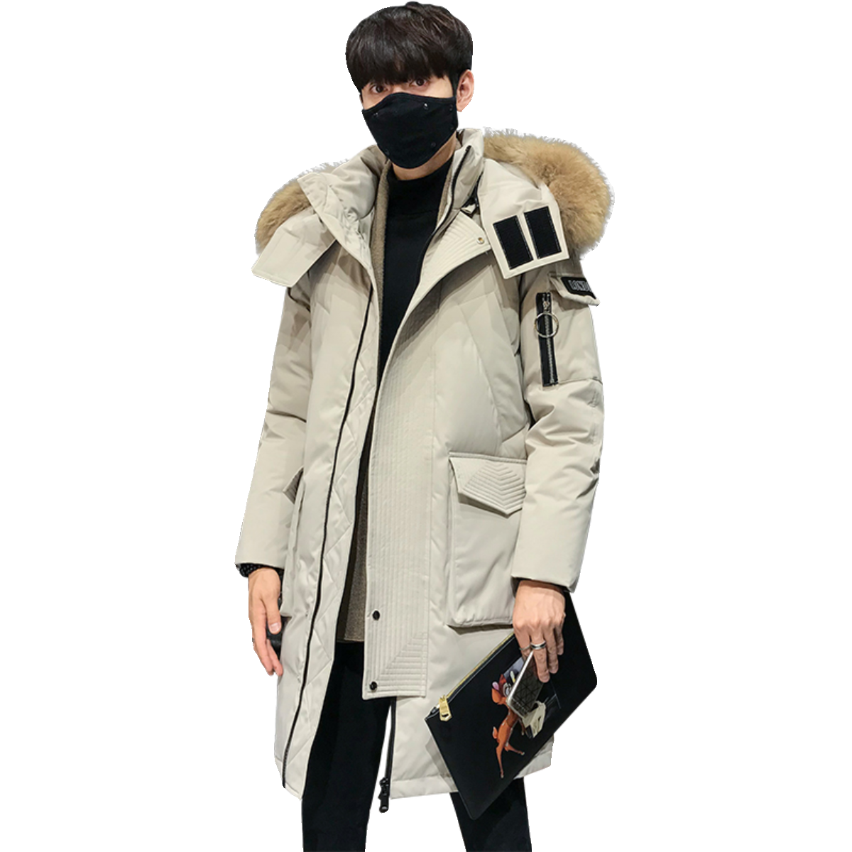 凯乐石薄荷羽绒服男冬季外套潮流加厚中长款大毛领户外青年男士韩