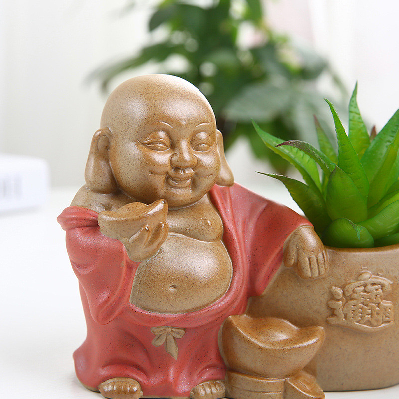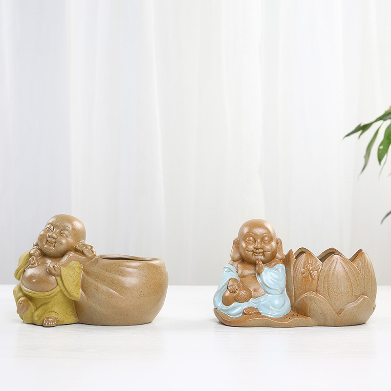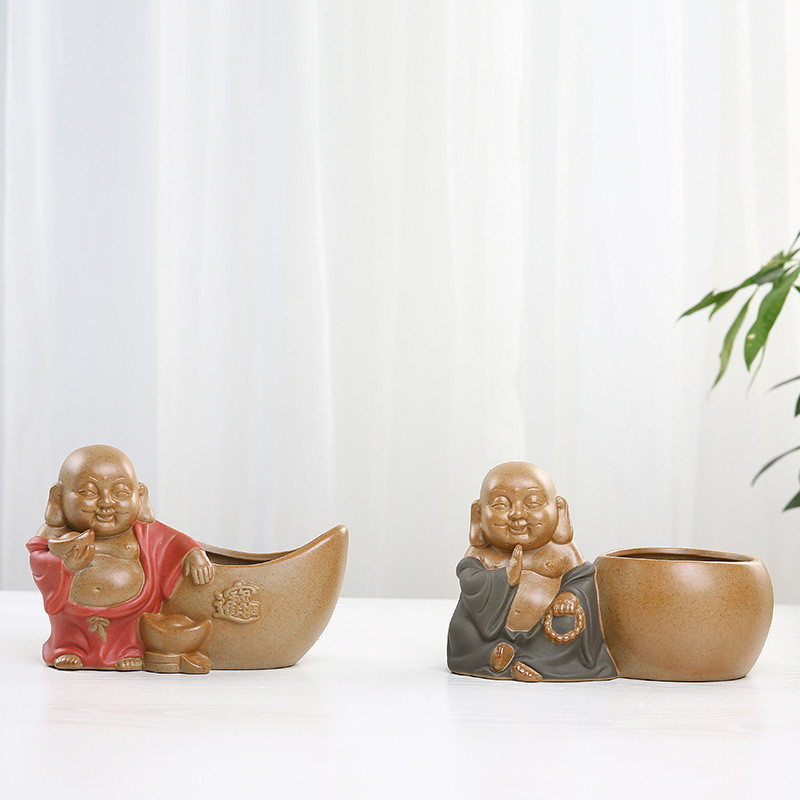 多肉陶瓷花盆,元宝植物盆 弥勒花盆 微景观粗陶多肉绿植家居盆栽