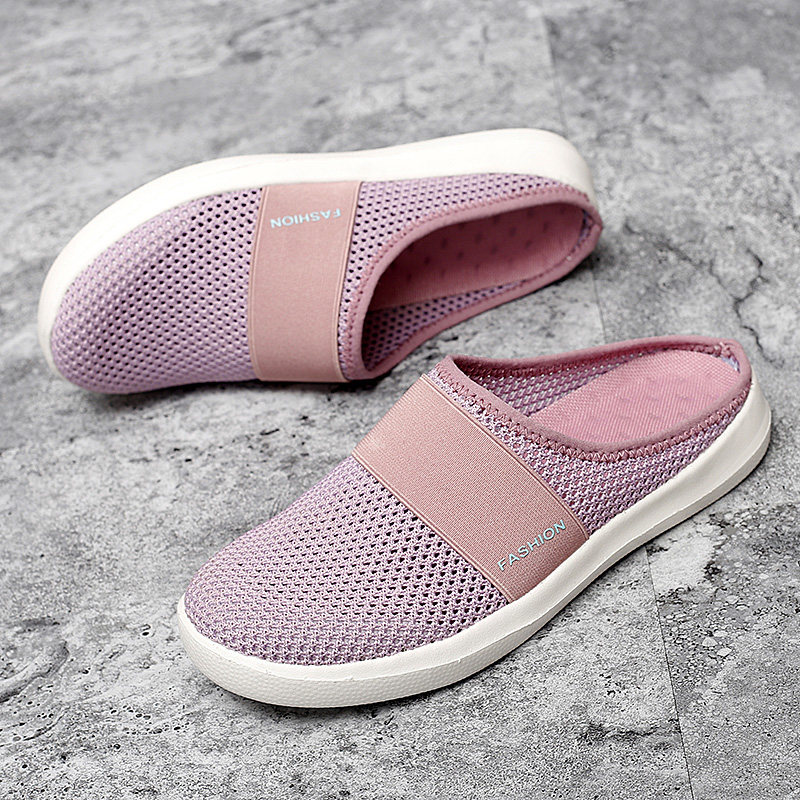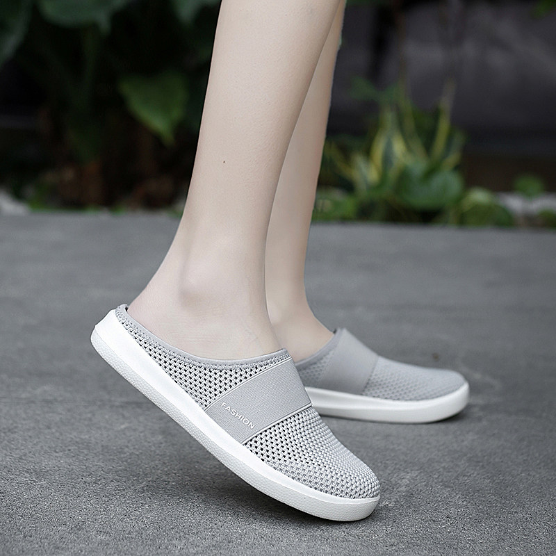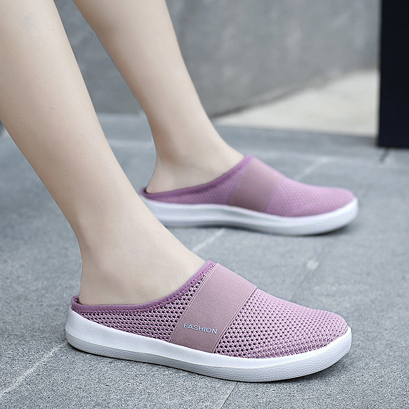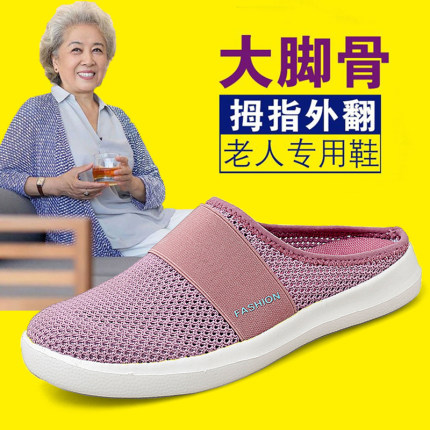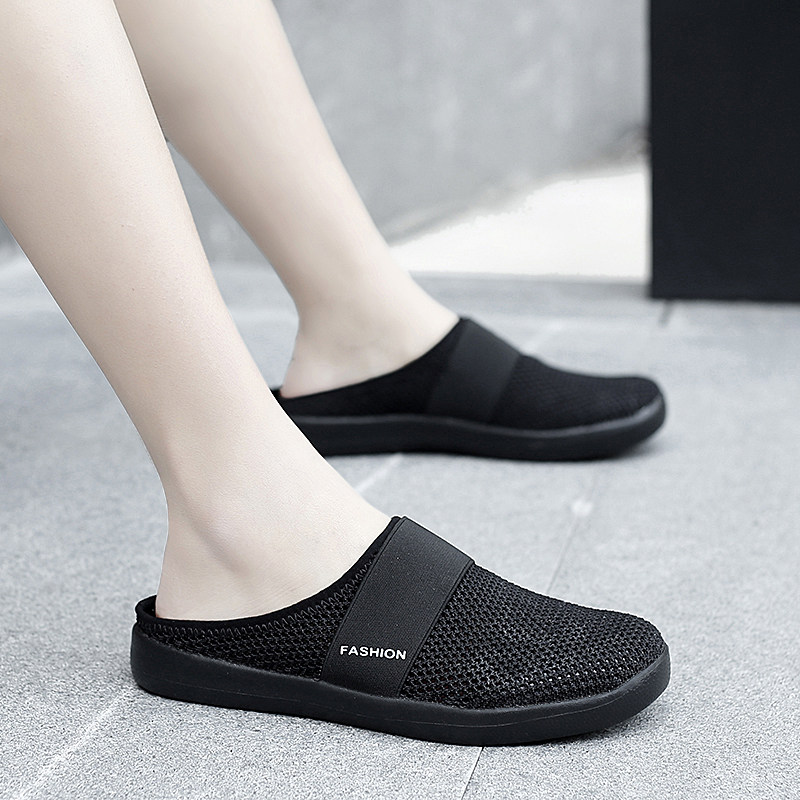 夏天包头半拖鞋女平底无后跟懒人鞋外穿妈妈室内家居老人防滑拖鞋