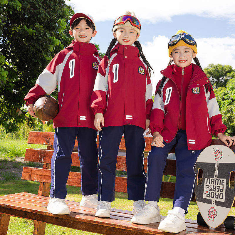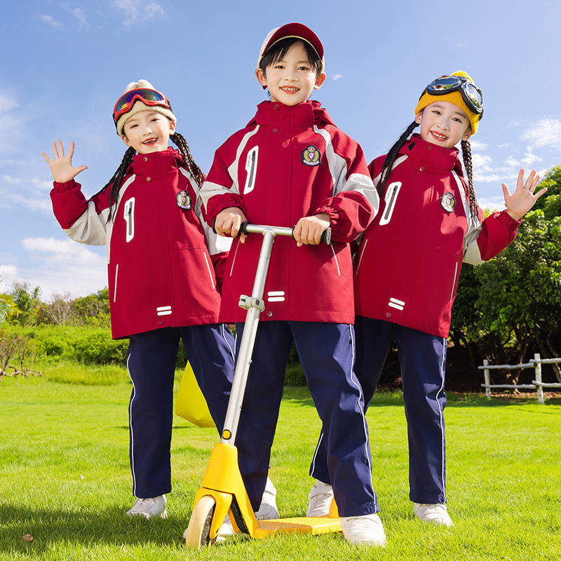 冲锋衣三件套红色幼儿园园服春秋装班服防风运动小学生校服秋冬装