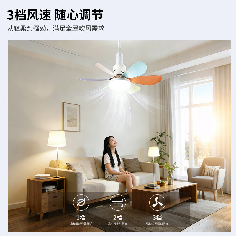 家用宿舍LED遥控小型吊扇灯泡E27螺口灯头一体电风扇灯大风叶静音