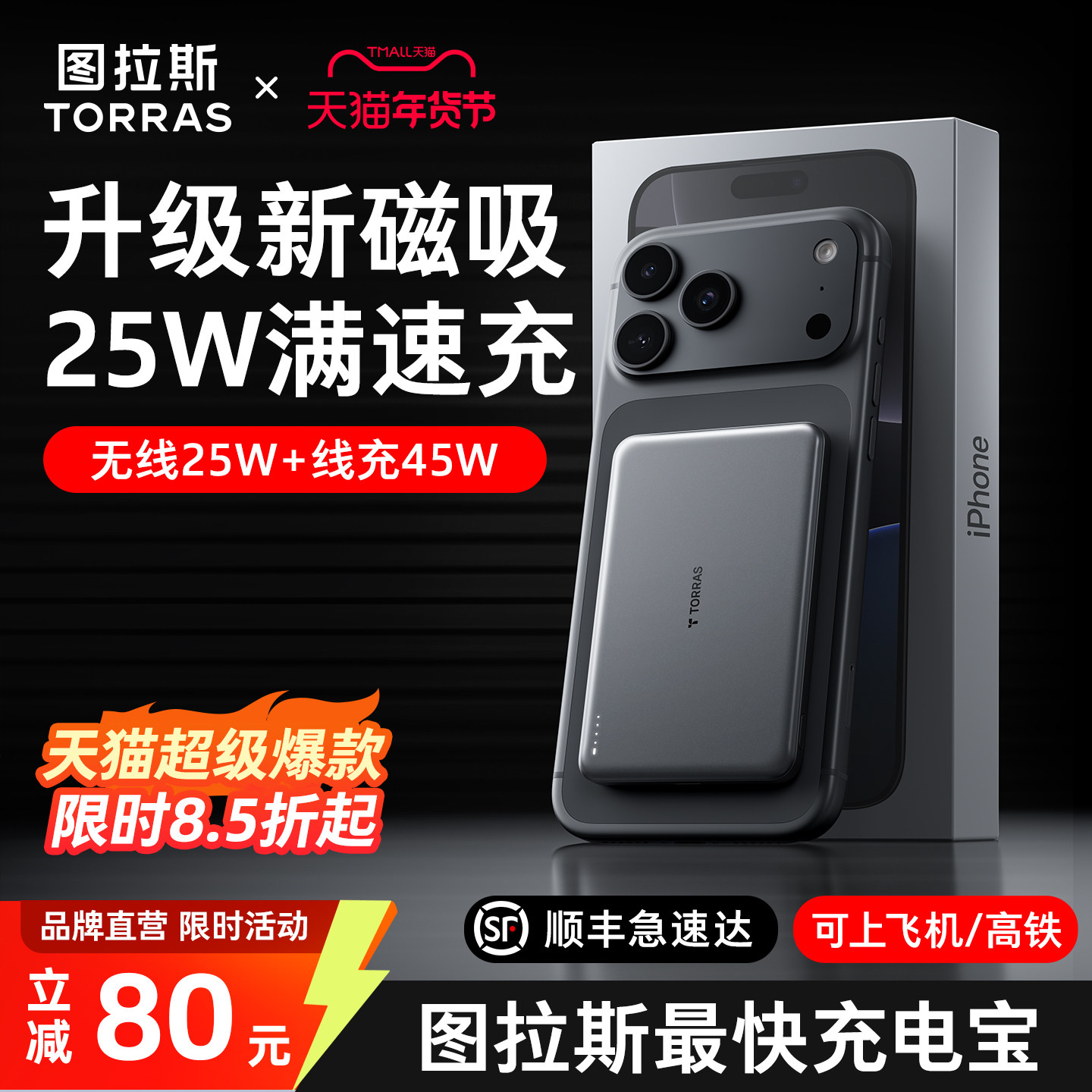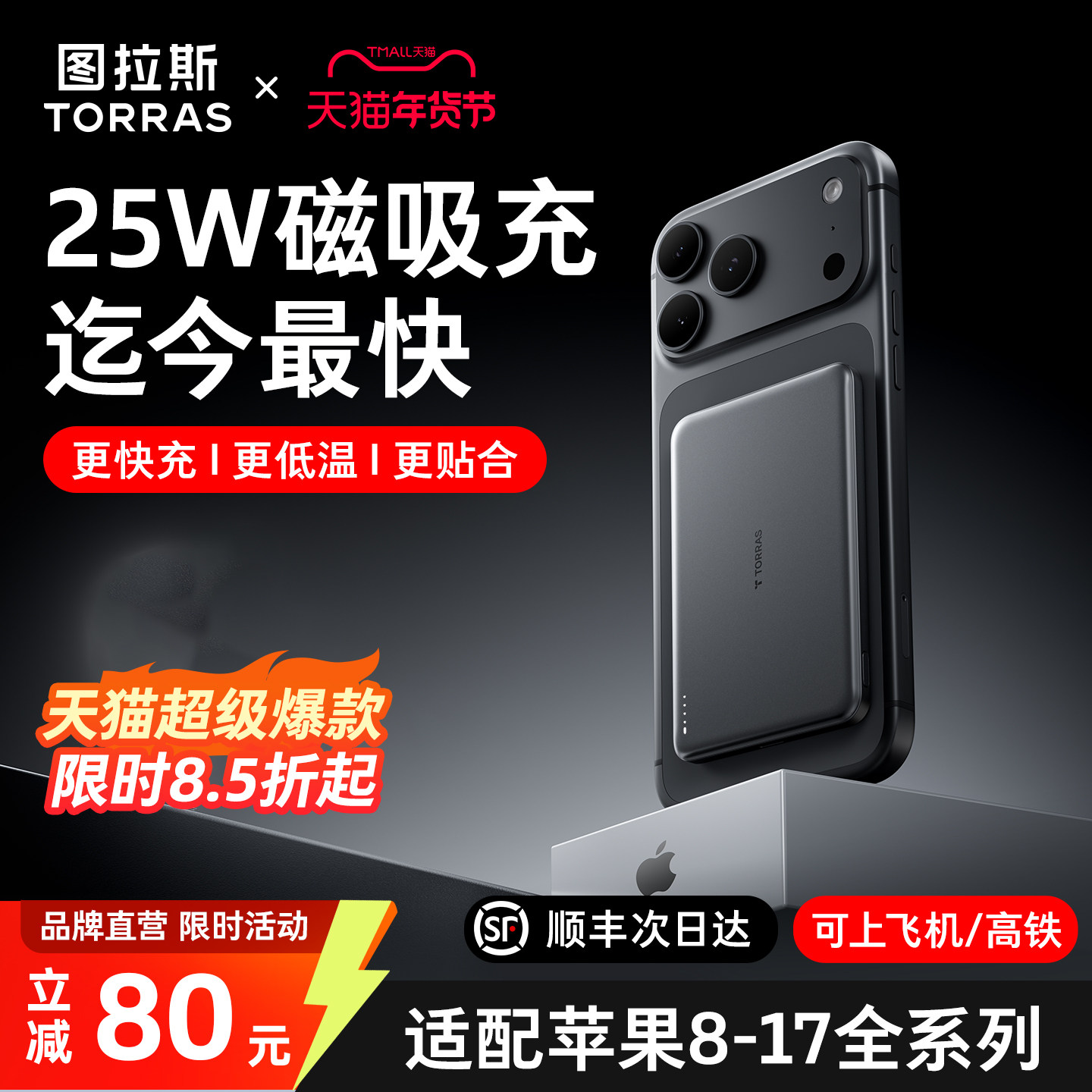 图拉斯磁吸充电宝2026新款小冰片适用苹果17无线magsafe3C认证可上飞机快充大容量专用移动电源官方正品16