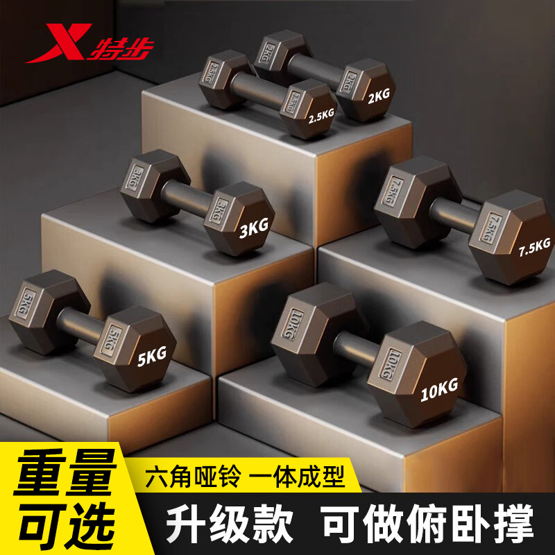 特步哑铃健身男士家用六角5kg一对杠铃运动10公斤器材青少年女士
