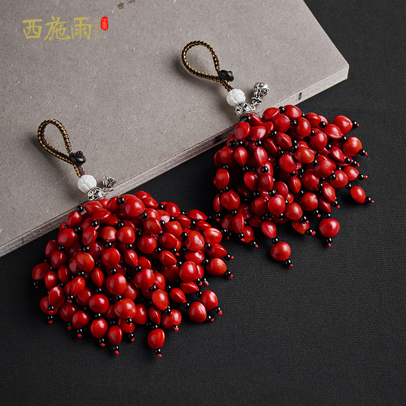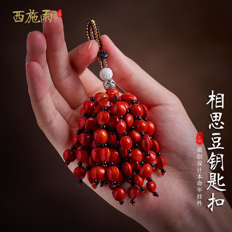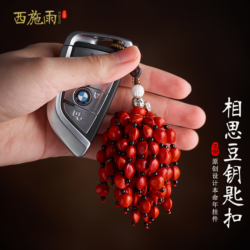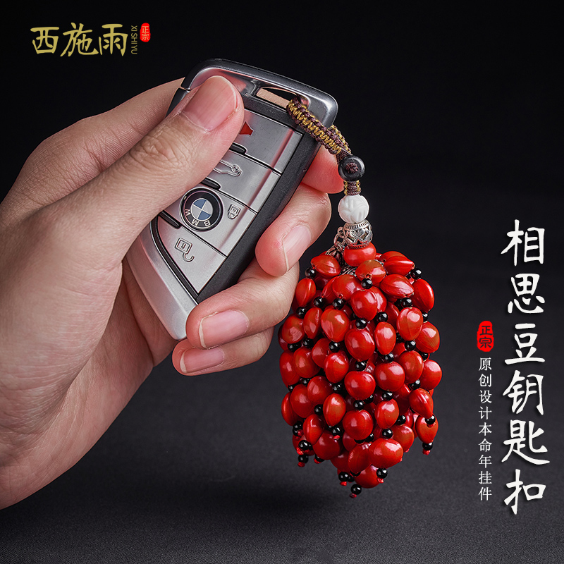 汽车钥匙扣挂饰男高档菩提相思豆红豆本命年钥匙挂件钥匙链女礼物