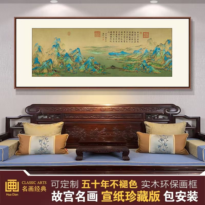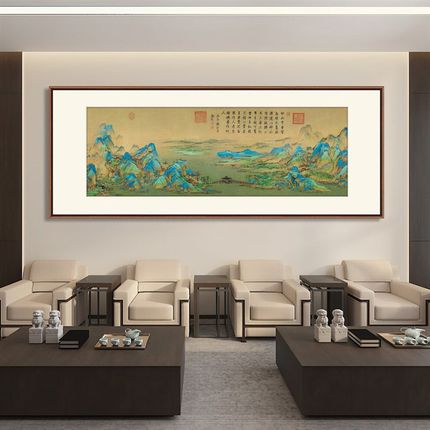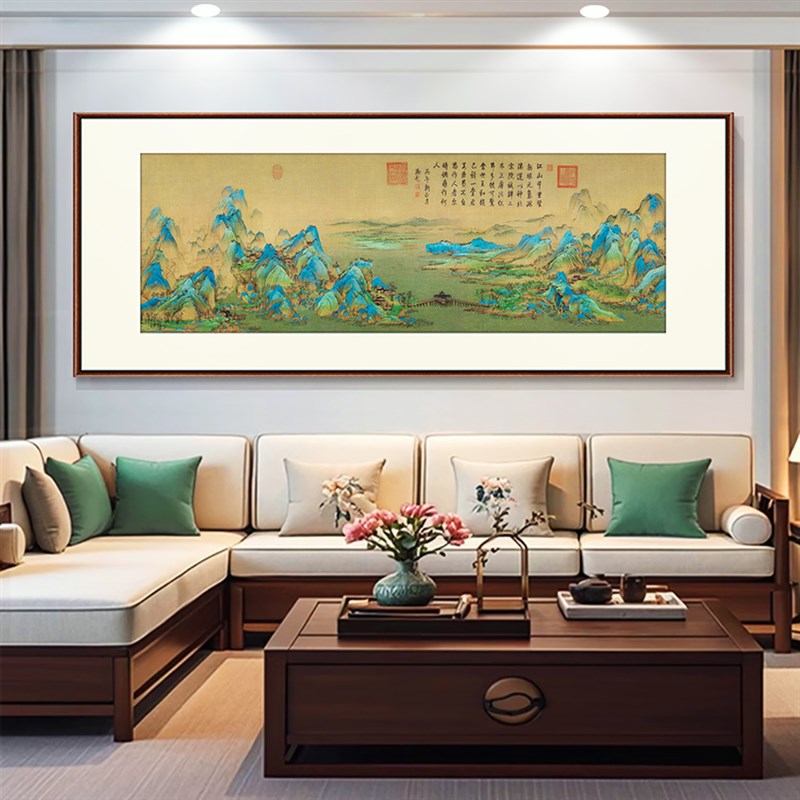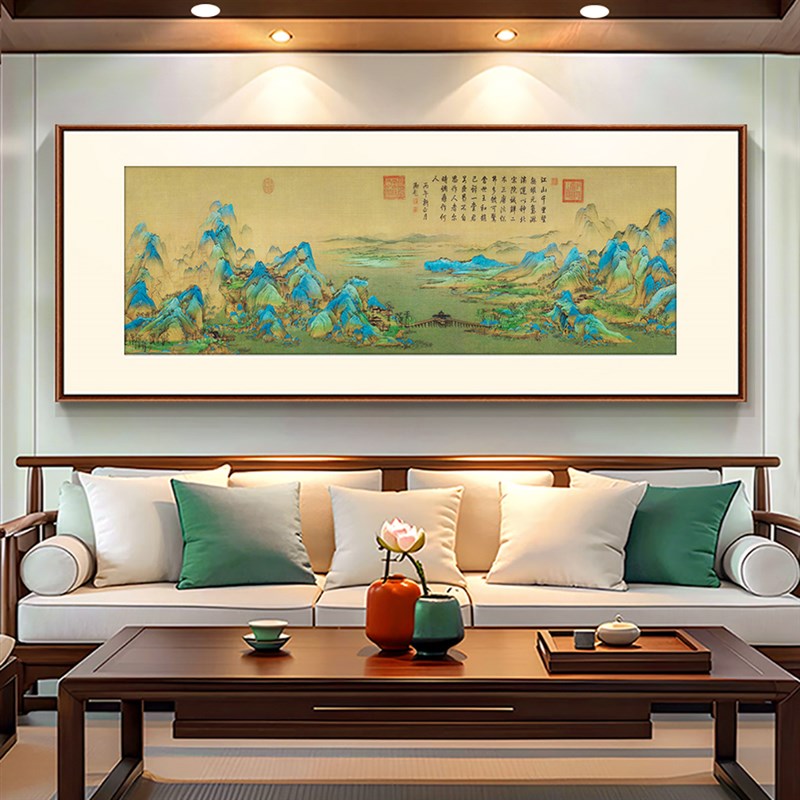 千里江山图山水画客厅装饰画办公室挂画新中式沙发背景画精华篇