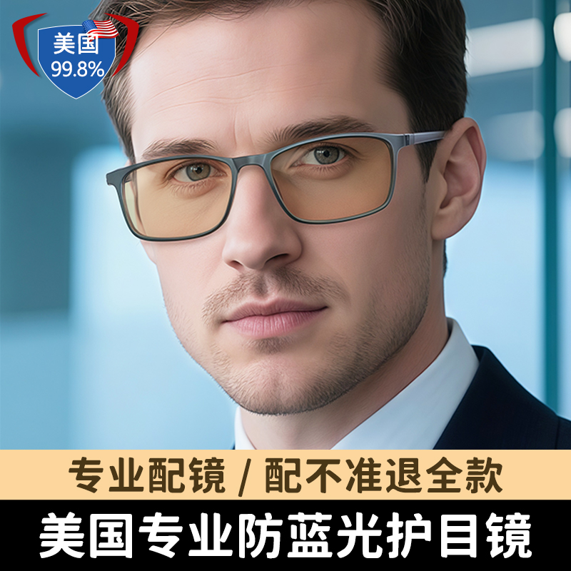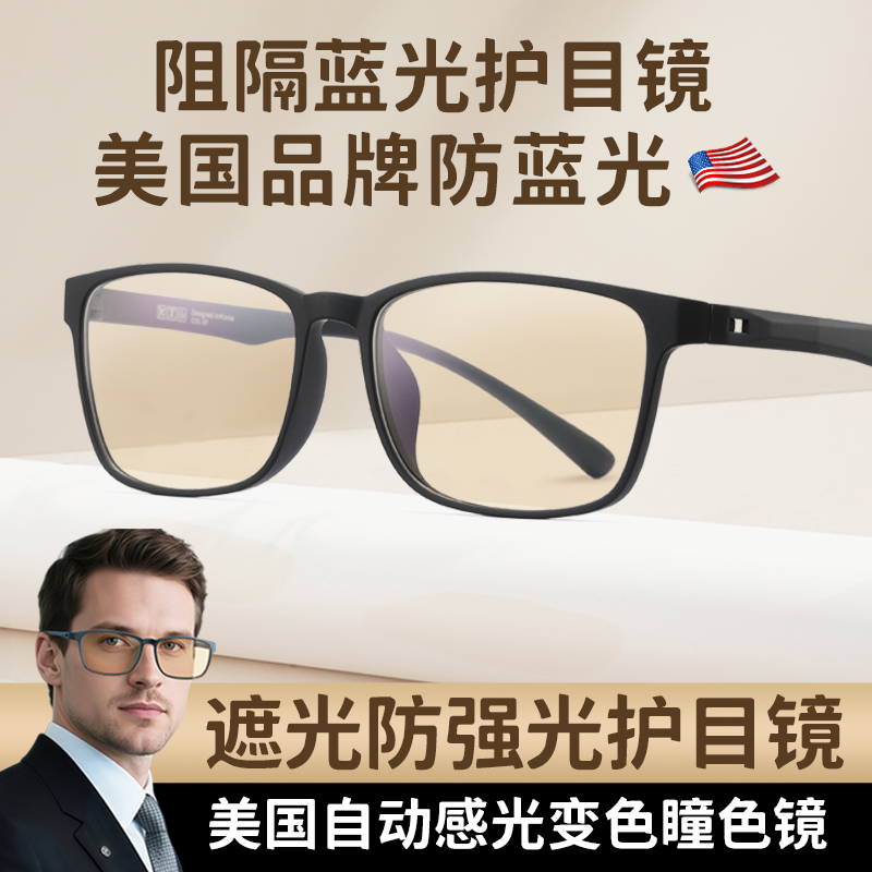 美国专业防蓝光眼镜抗辐射疲劳男看手机玩游戏大脸无度数变色平镜