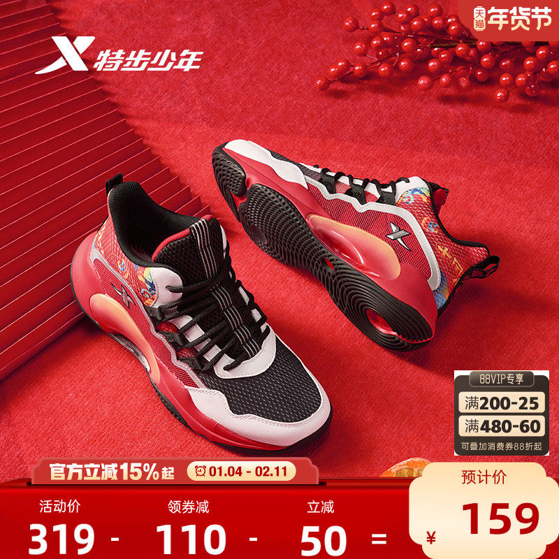 福燈贺岁|特步童鞋儿童运动篮球鞋男童新年款中大童缓震耐磨球鞋