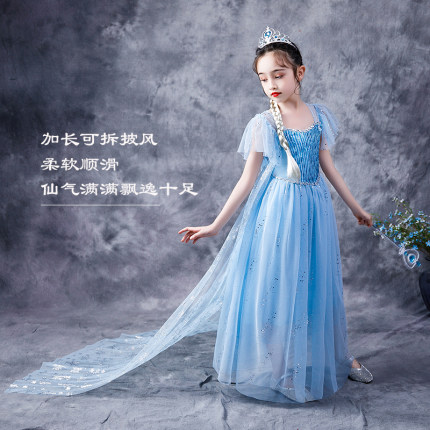 冰雪奇缘2爱莎公主裙夏季儿童装女童连衣裙艾莎正版elsa拖尾裙子