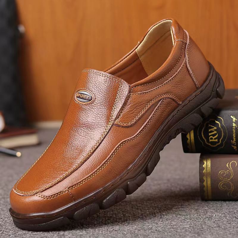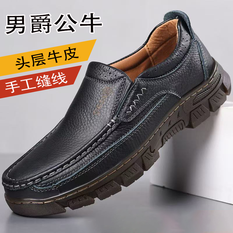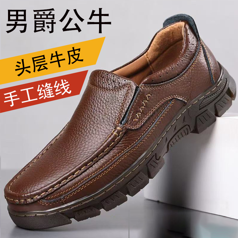 男爵公牛牌新款爆款真皮休闲皮鞋男士软底防滑轻便百搭牛筋底男鞋