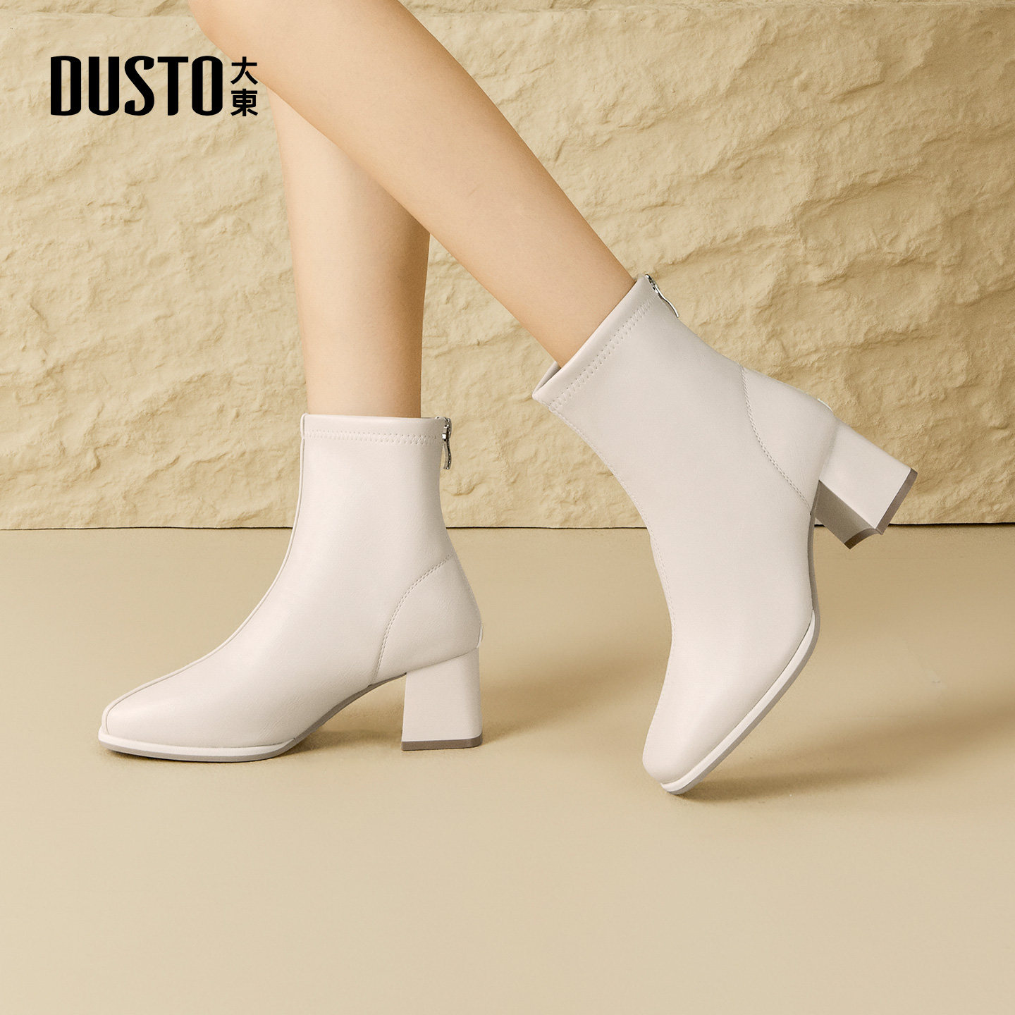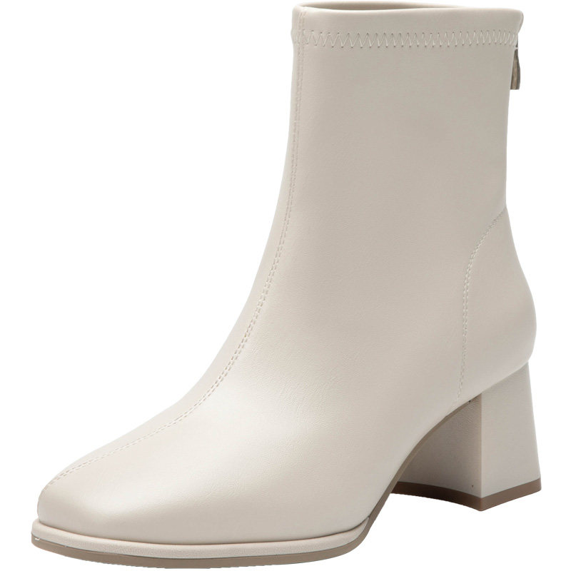 大东白色瘦瘦靴短靴女款2025新款冬季加绒高跟鞋巨好看靴子小裸靴