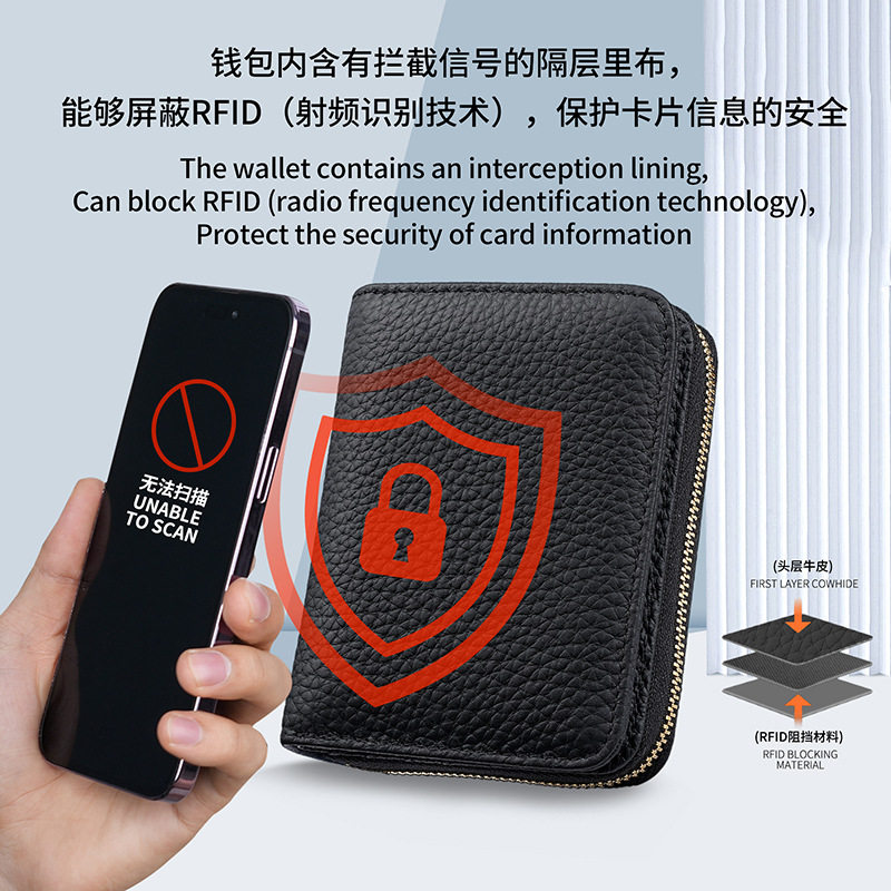 多功能头层牛皮日系女士钱包短款真皮零钱包女硬币散钱包RFID钱夹